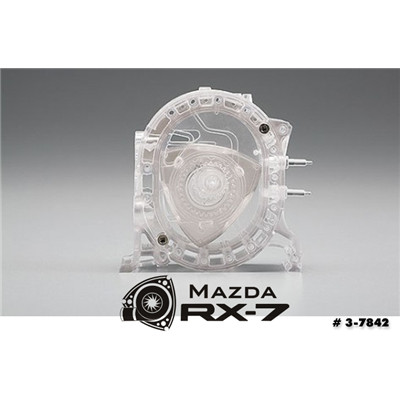 Here's a fully assembled "working" model of the Mazda RX-7's rotary engine, as seen from the front. The "Spirit" part of this model is that it's entirely made of clear plastic, and the "working" part is you can rotate the rotor to see how a rotary engine works. Very educational!