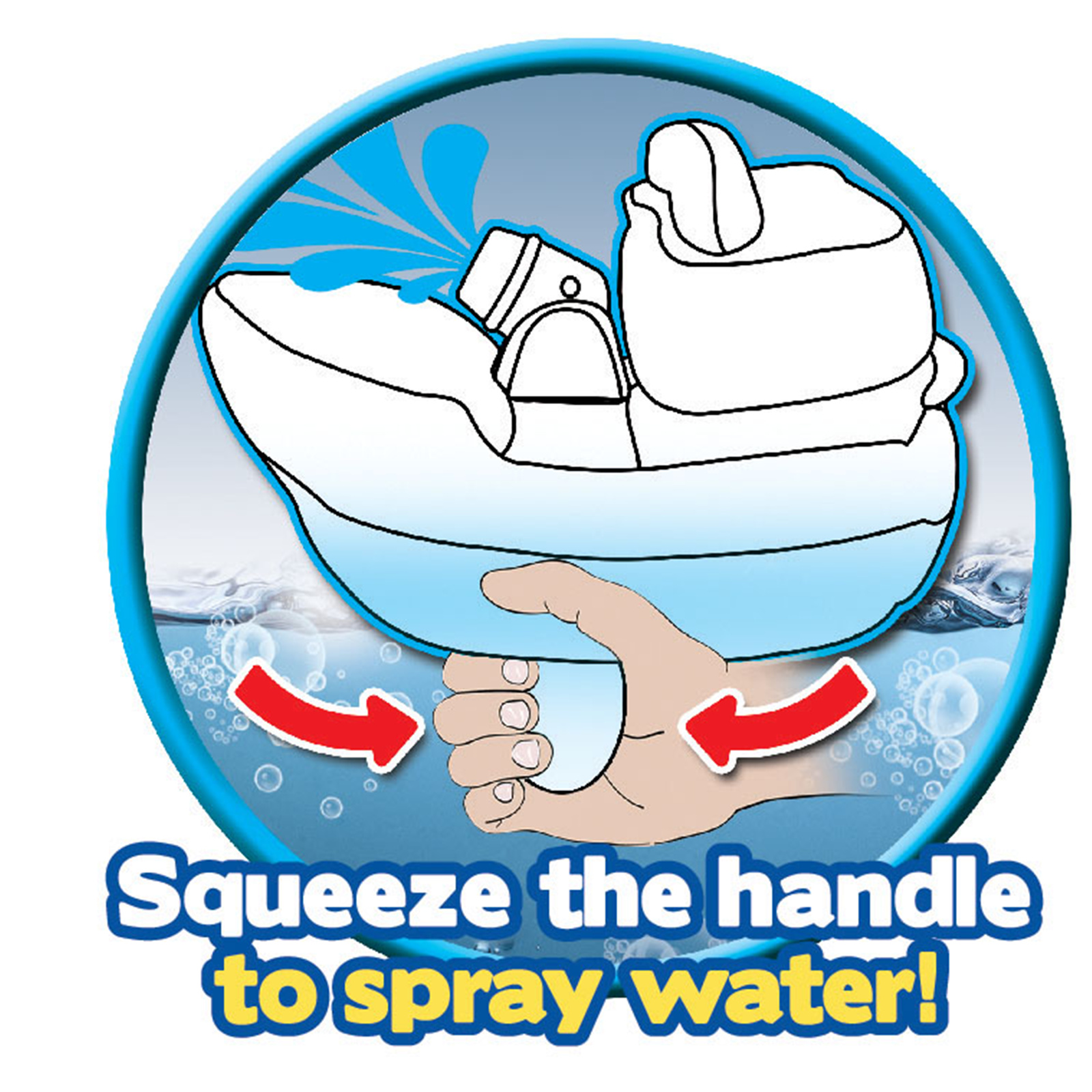 - Features a press-handle function to spray water at targets