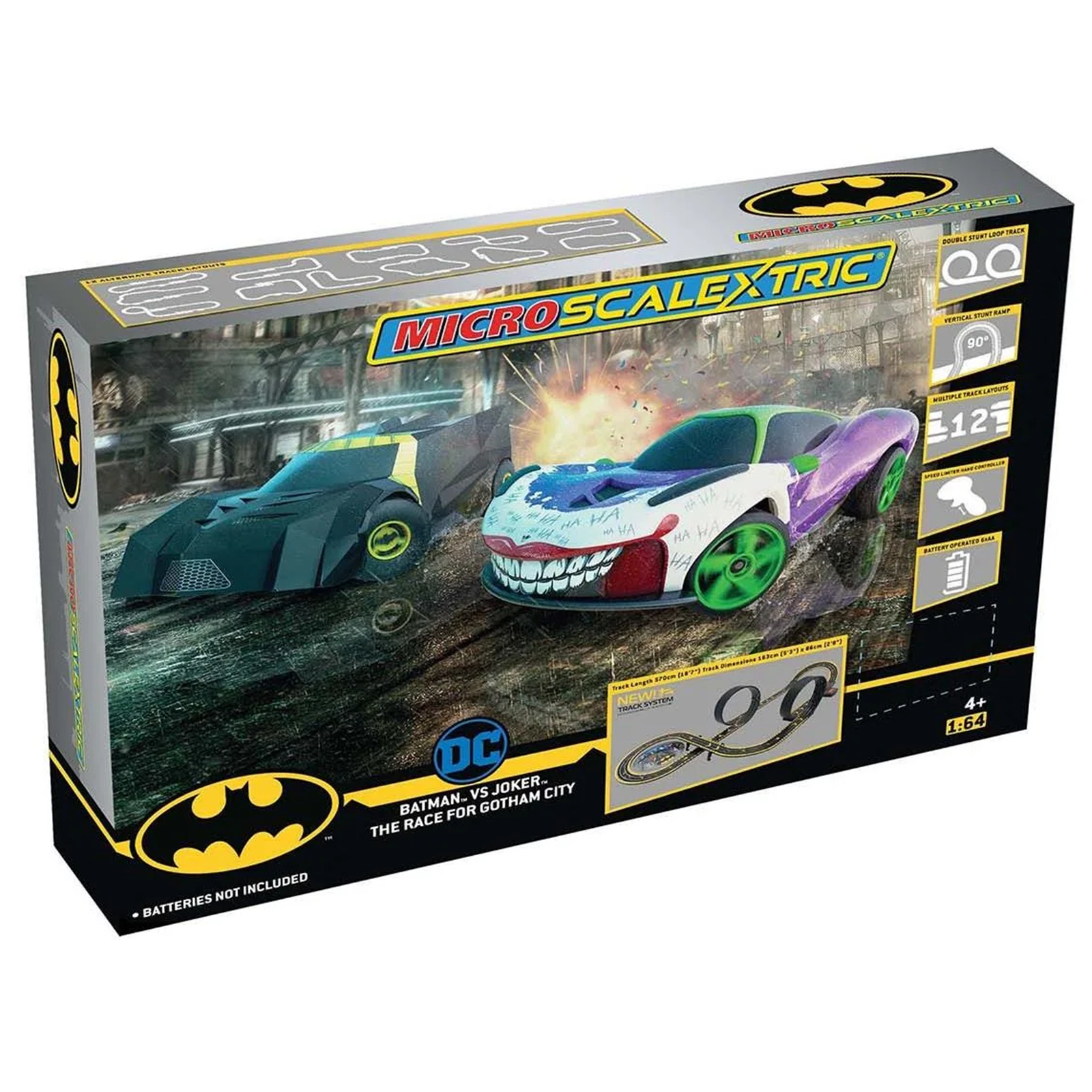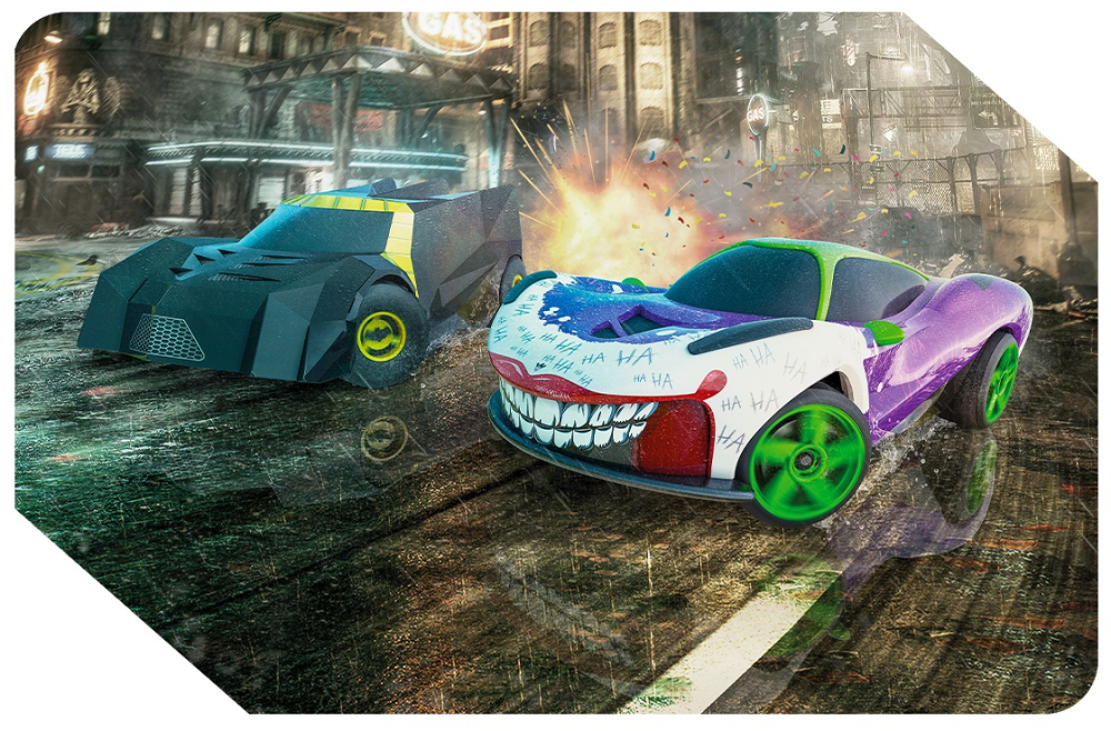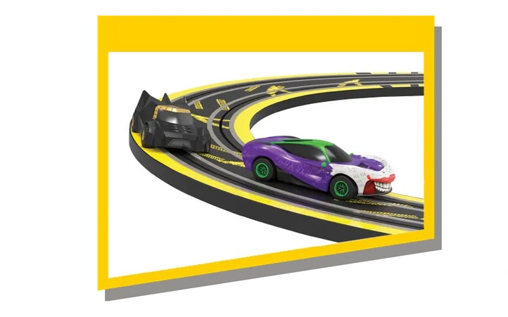 The new Micro Scalextric Batman vs Joker set has the Dark Knight chasing the Clown Prince of Crime in a Race for Gotham City. From two super resistant cars, speed limiter hand controllers and 12 track layouts, all with a double stunt loop track and a vertical stunt ramp - no adventure is off limits.