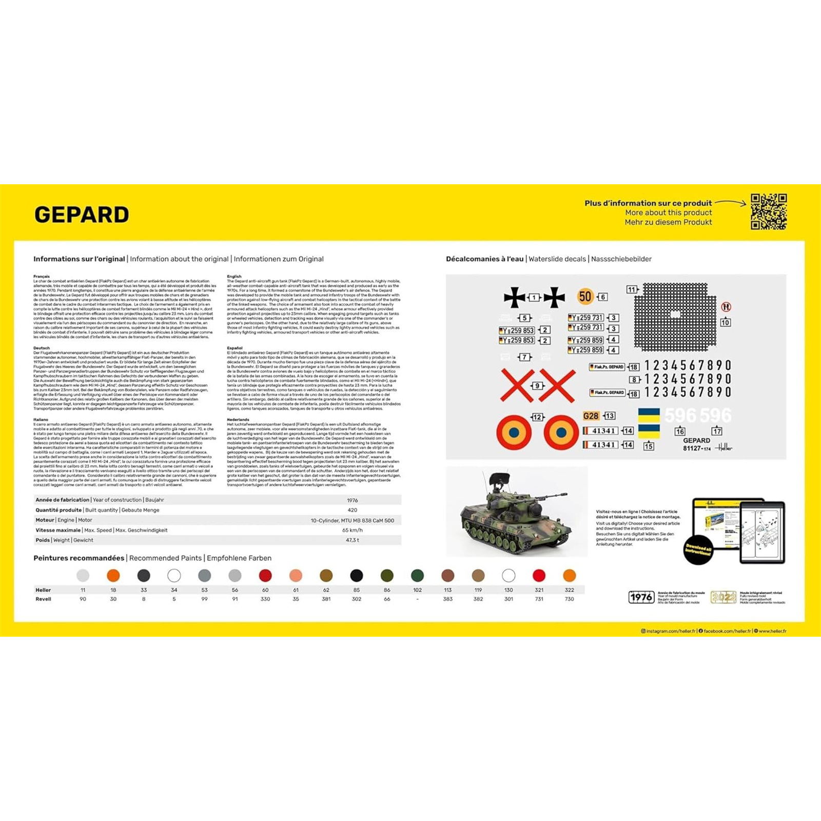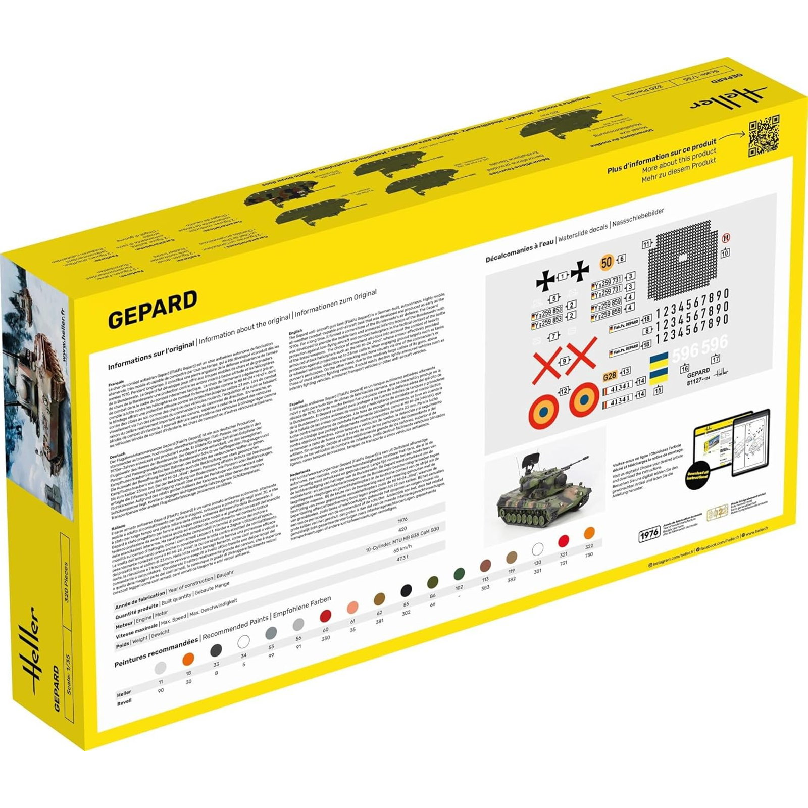 The HELLER GEPARD kit includes easy-to-follow instructions, ensuring that each component fits seamlessly together for a realistic finish. It's not just a fun project; it's a piece of history that brings the legendary Gepard's role in modern warfare to life. Ideal for dioramas or standalone display, this essential plastic model reflects the craftsmanship that HELLER is known for. Perfect for display in the home or office, the HELLER GEPARD will surely be a conversation starter among military enthusiasts.
