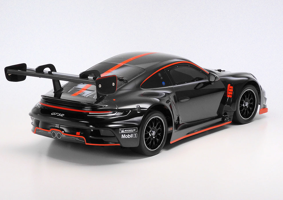 This radio-controlled model assembly kit recreates the Porsche 911 GT3 R (992) with a stunning and highly detailed polycarbonate body that comes pre-painted in black for this limited-edition release. The kit is based on the beginner friendly and highly customizable TT-02 chassis, which allows hobbyists to grow as their driving and building skills develop.