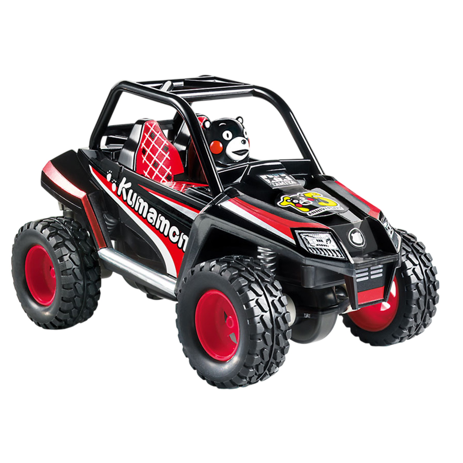 This special Mini 4WD car assembly kit commemorates the 15th anniversary of Kumamoto Prefecture official character Kumamon's birth, with a UTV style body based upon that of the Fun-Vroom and a Kumamon-inspired black and red color scheme. The Kumamon driver figure comes assembled and pre-painted, while the 4-wheel drive EZ chassis has a central double-shaft motor and requires no cement or screws.
