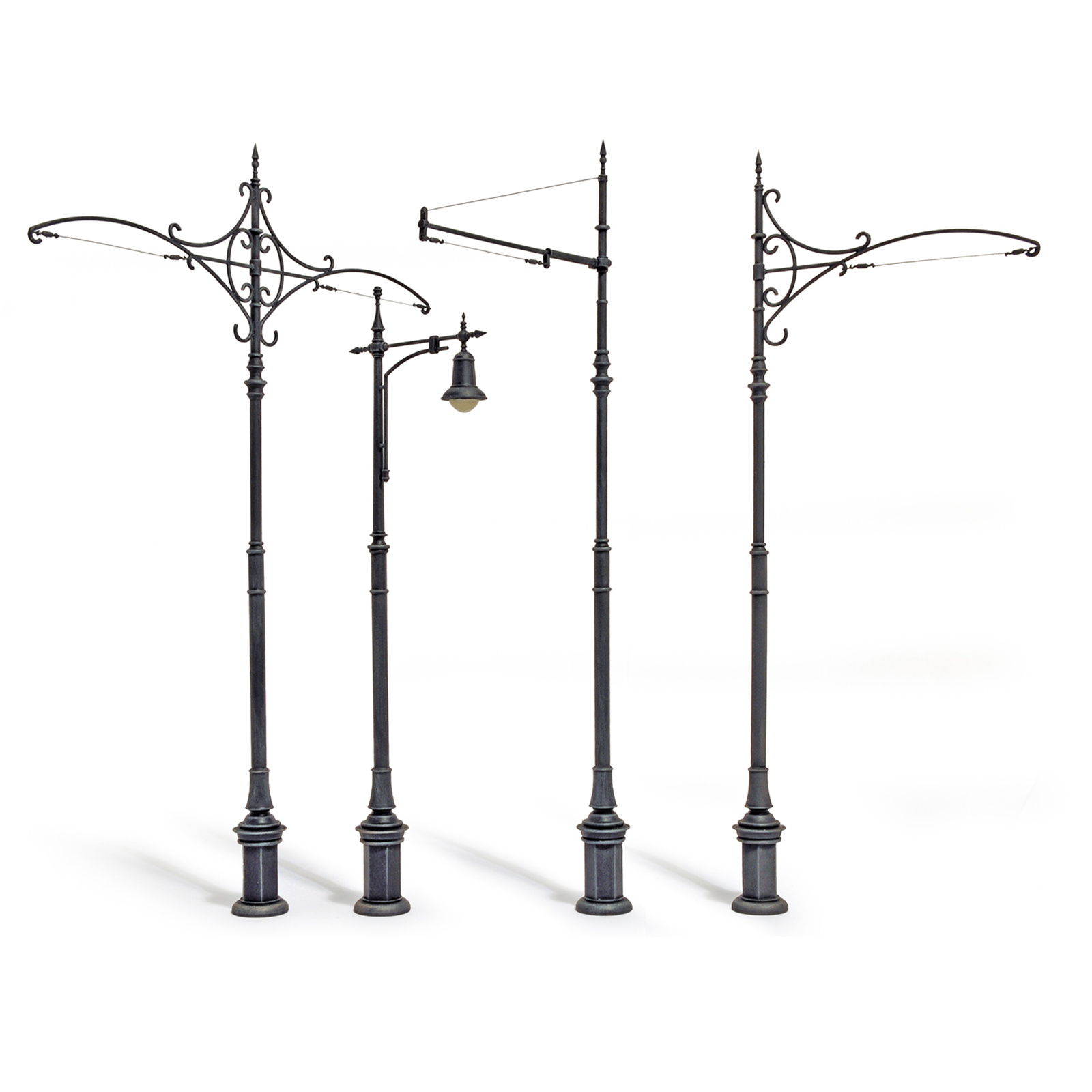 This kit contains unassembled and unpainted model of tram supports and street lamp.