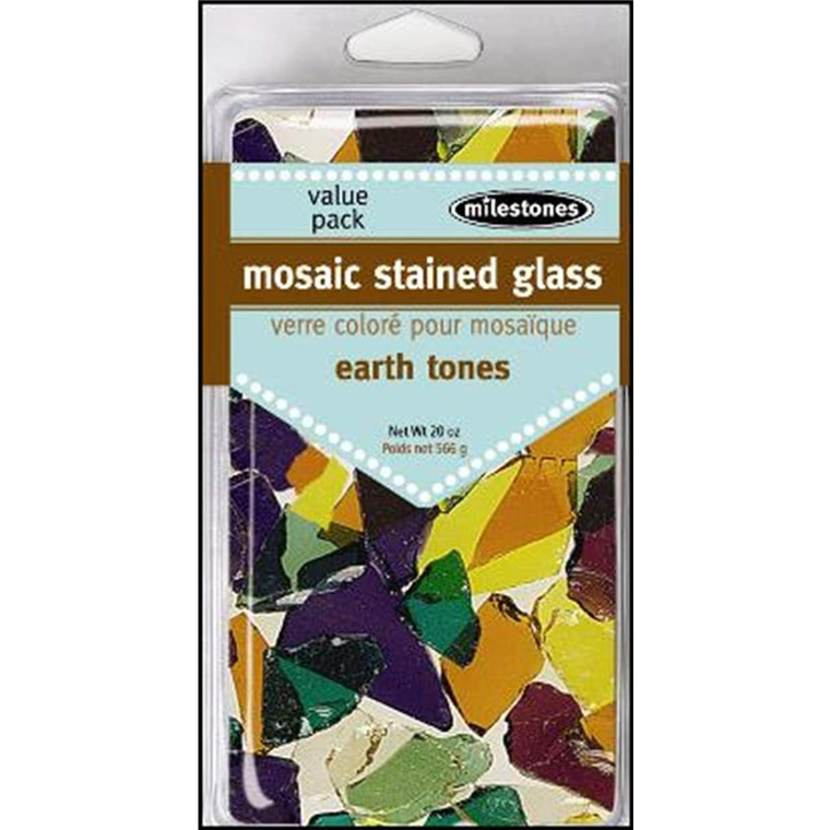 The Milestones Mosaic Stained Glass Value Pack - Earth Tone is a thoughtfully curated collection of stained glass pieces, ideal for enhancing a variety of mosaic and decorative projects. Weighing 20 ounces, this value pack contains an ample supply of glass in rich, natural earth tones, with pieces that come in a variety of unique shapes and sizes. Whether you're crafting stained glass stepping stones or personalizing home decor, this versatile pack provides the perfect blend of color and texture.