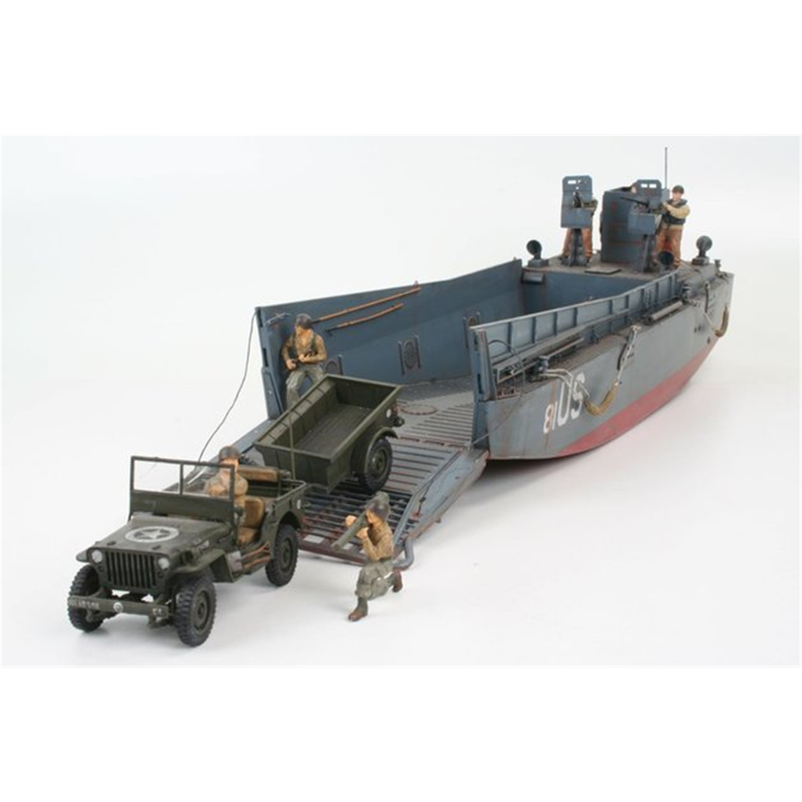 D-Day was one of the most complicated human endeavors ever accomplished. The numbers of ships, vehicles and men involved in the operation were truly mind boggling. Ships carried landing craft within range of shore, the landing craft slogged ashore under bombardment to drop Jeeps, tanks, and men onto obstacle-strewn beaches covered by machine-guns and artillery. Troops and equipment did the impossible, breaking through the Atlantic Wall and pushing inland. Kit features an LCM-3, jeep and six figures plus two sets of decals for the landing craft and jeep.
