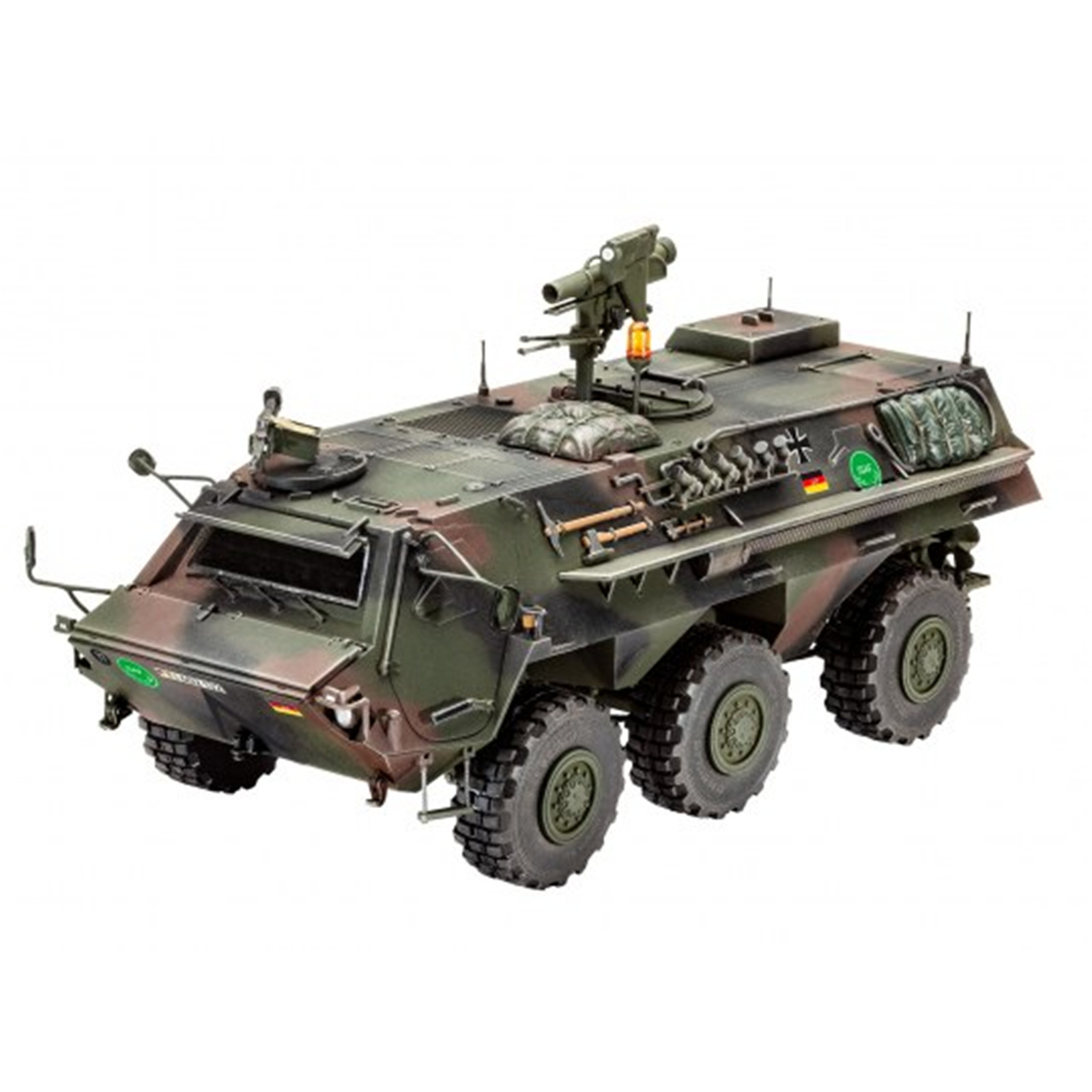 A model construction kit of the workhorse of the Bundeswehr (German Armed Forces). This wheeled armoured vehicle is a true all-rounder with all-wheel drive and water propulsion unit.