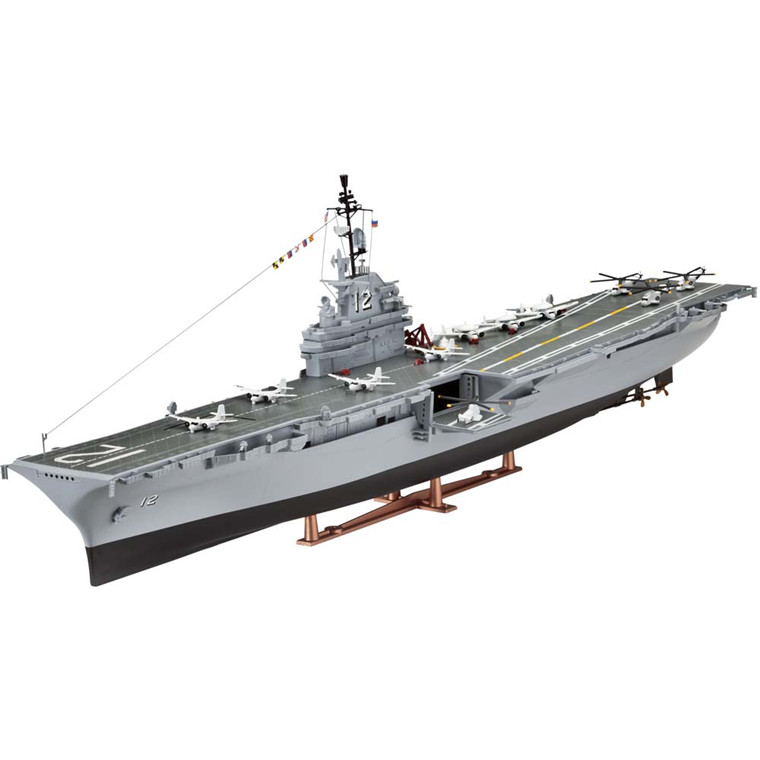 This kit features a full hull, display stand, angled deck, armaments, Apollo 11 capsule, aircraft and markings for the ship from 1969.