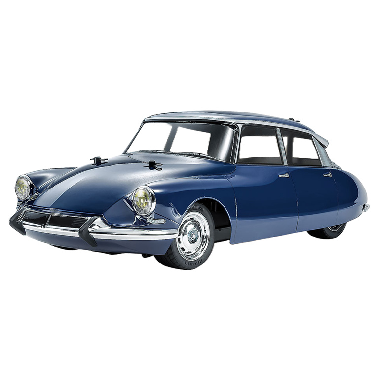This assembly kit creates an R/C model of the Citroen front-wheel drive saloon car DS which was honored with third place in the 1999 Car of the Century awards. In 1955, the Citroen DS was announced in Paris and it was sometimes dubbed the "spaceship'' for its aerodynamic design. This model artfully captures that legendary styling with a lightweight polycarbonate body, based upon the compact 2WD of the MB-01 chassis. Chrome plated wheels are paired with radial tires.