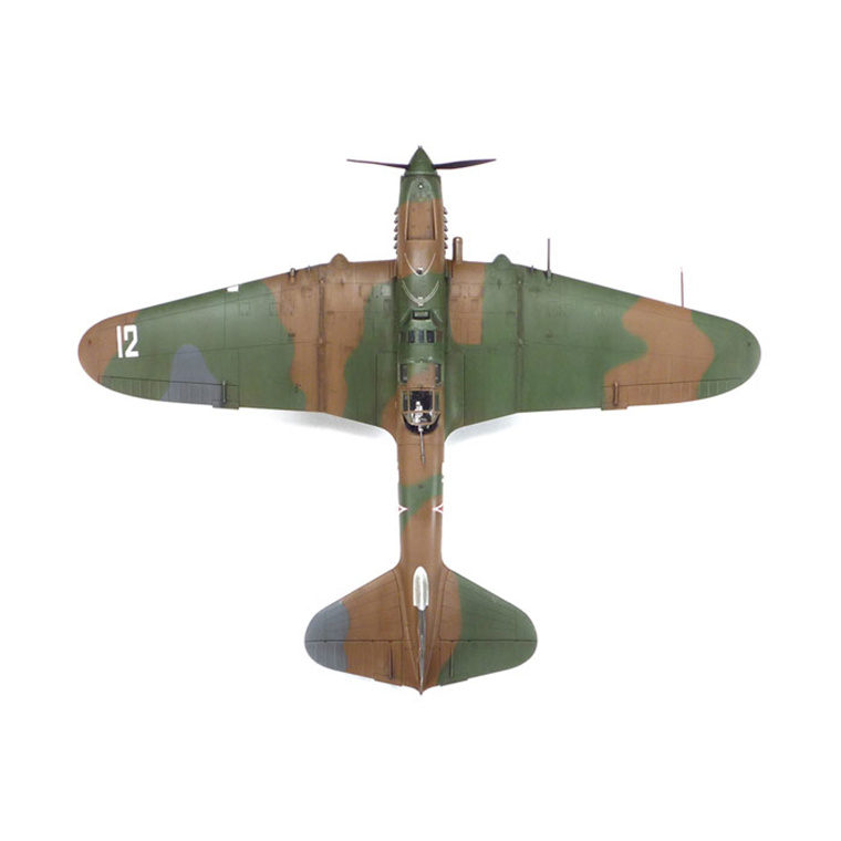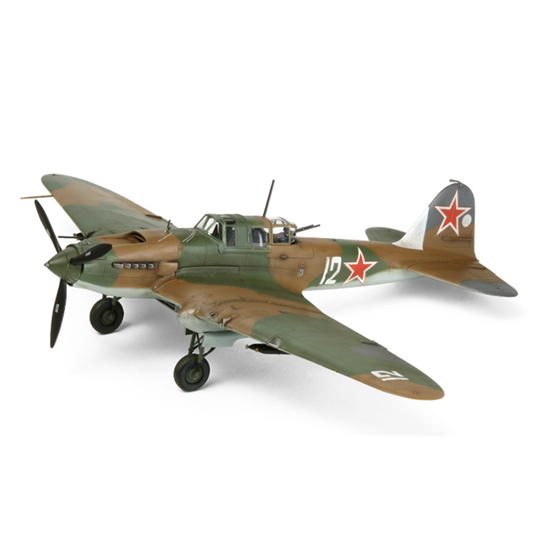 The Ilyushin IL-2 Shturmovik was the Russian military's main ground-attack aircraft during WWII, with over 36,000 examples built by the end of the war. Production of the single-seat version of the IL-2 began in March 1941 but severe losses led to the development of a two-seat version with a rear gunner. A version which featured outer wing sections swept back at 15-degrees for a better center of gravity was introduced in late-1943. Together with the T-34 tank, the Il-2 contributed greatly to the eventual Russian victory.