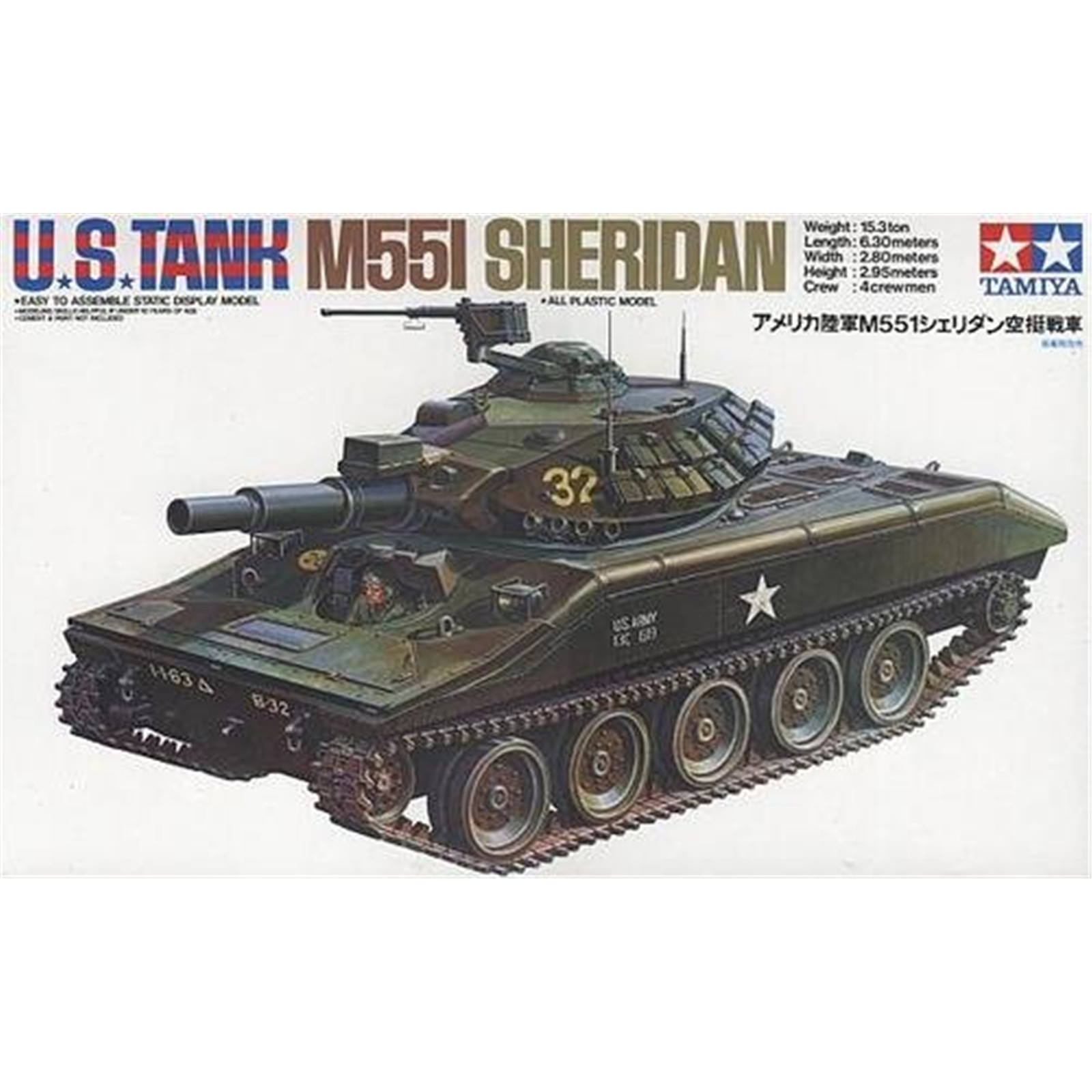 - 1/35 scale plastic assembly kit of the U.S. Sheridan light tank (display model).