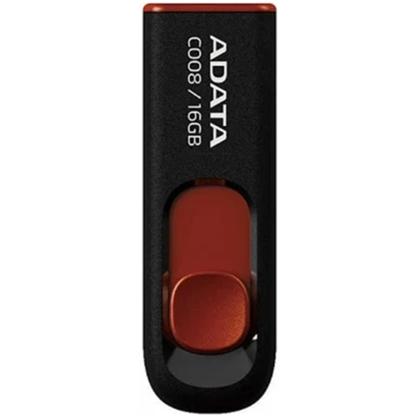 ADATA C008 Retractable USB Flash Drive - 16GB - Black / Red USB 2.0