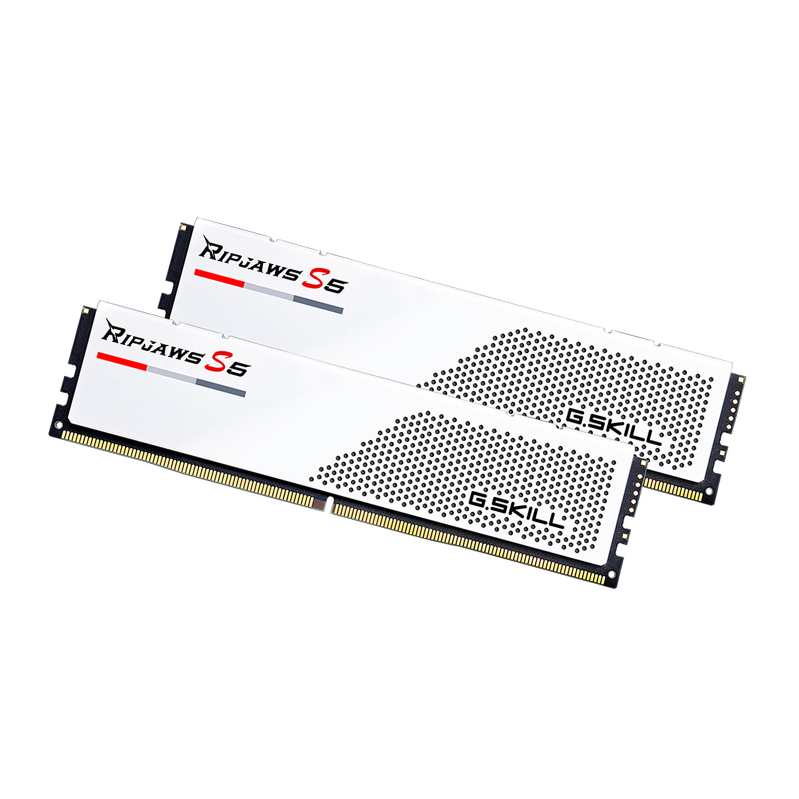 Ripjaws S5 is a high-performance DDR5 memory tailor-made for the latest Intel® Core™ processor platform. Using only best-in-class, hand-screened memory ICs that passed G.SKILL rigorous performance tests, each Ripjaws S5 memory kit strikes the perfect balance between performance, compatibility, and stability. Available in matte black or matte white aluminum heatspreaders, Ripjaws S5 is the ideal match in any PC build for enthusiasts, gamers, and modders who are looking for the perfect trinity of speed, capacity, and style.