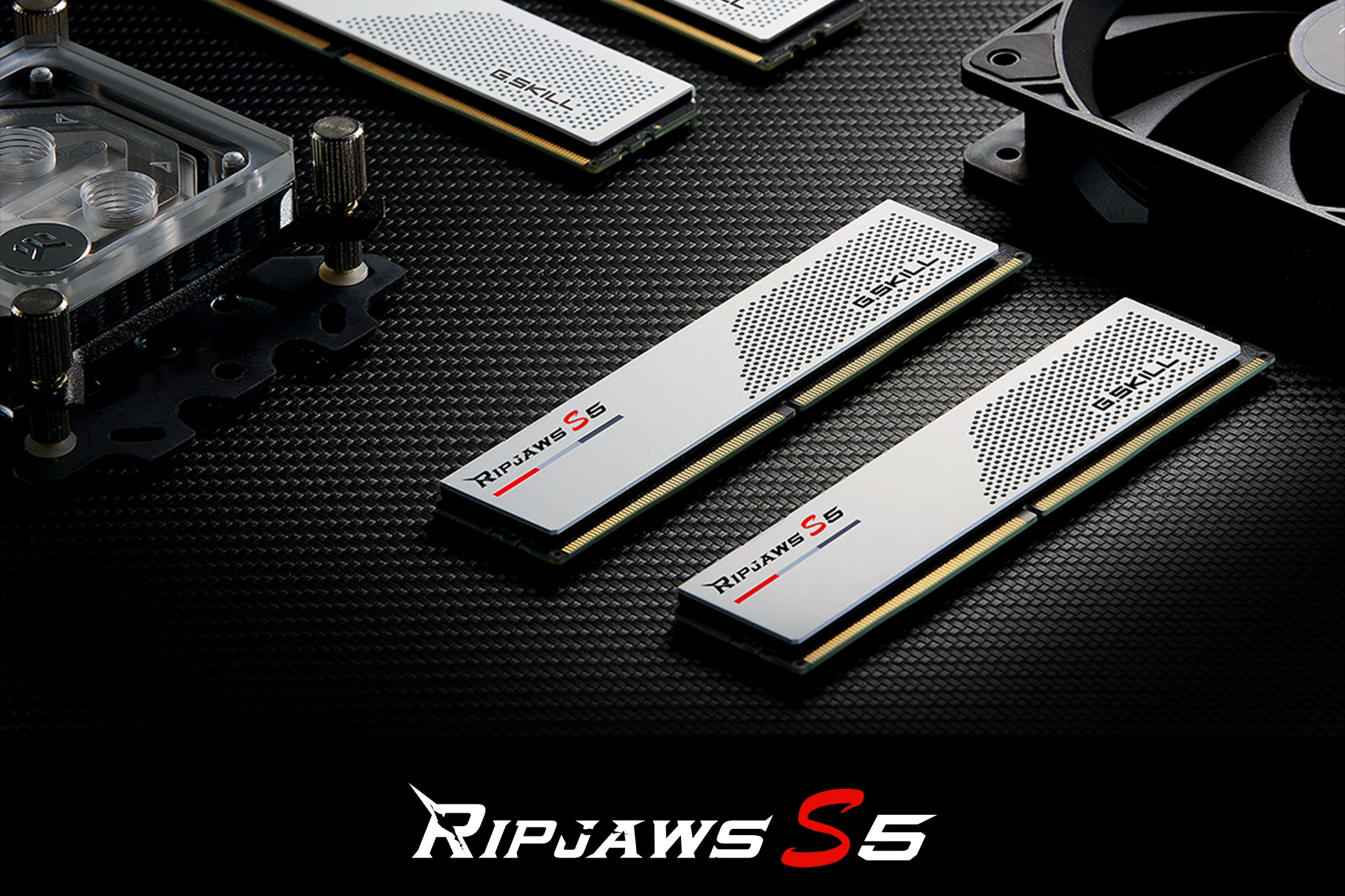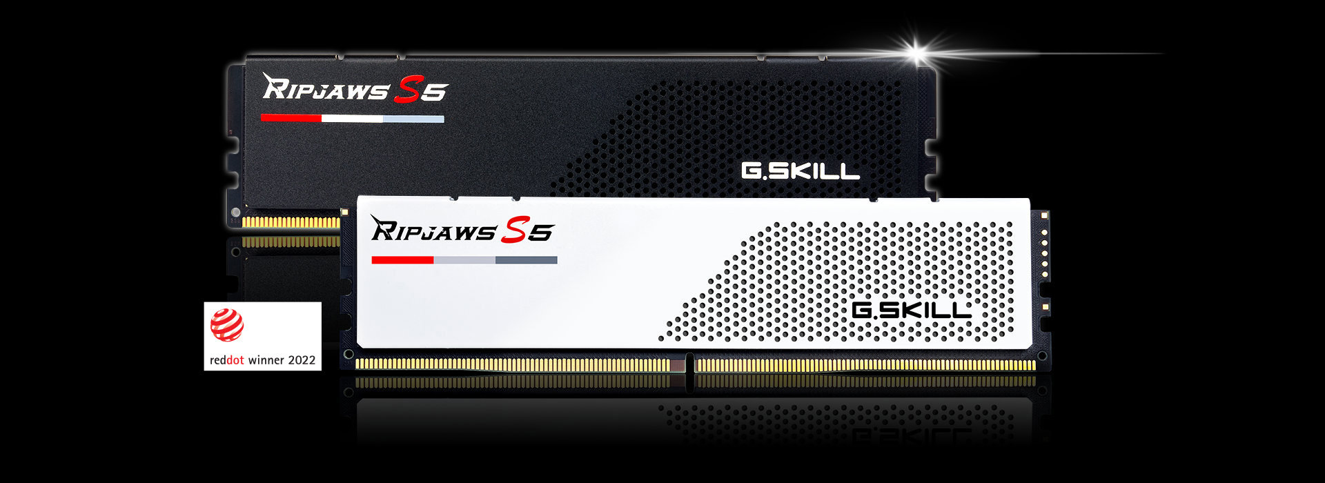 Ripjaws S5 is a performance DDR5 DRAM memory series made with hand-screened memory ICs that passed G.SKILL rigorous validation tests. Each Ripjaws S5 memory kit strikes an ideal balance between performance, compatibility, and stability and is available in matte black or matte white aluminum heatspreaders.