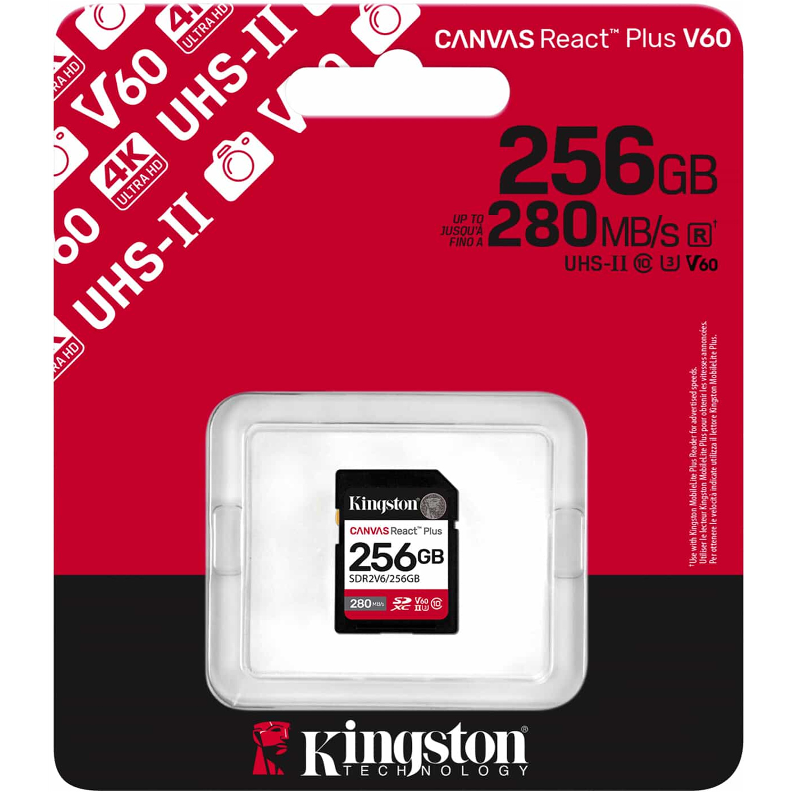 Kingston Canvas React Plus SD Memory Card - 256GB UHS-II - U3 - V60 - Read up to 280MB/s - Write up to 150MB/s - for DSLRs / Mirrorless Cameras & 4K Video Production