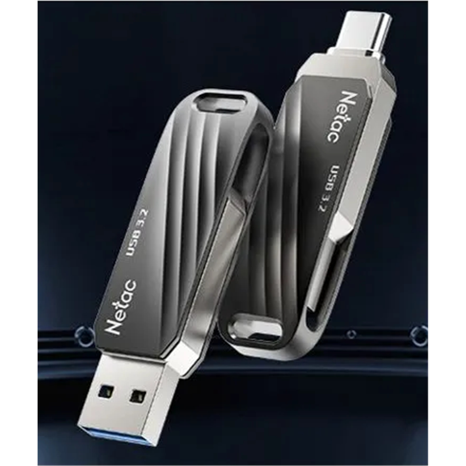 Netac US11 128GB USB3.2 + Type-C USB Drive - Pearl Nickel + Polar Night Black