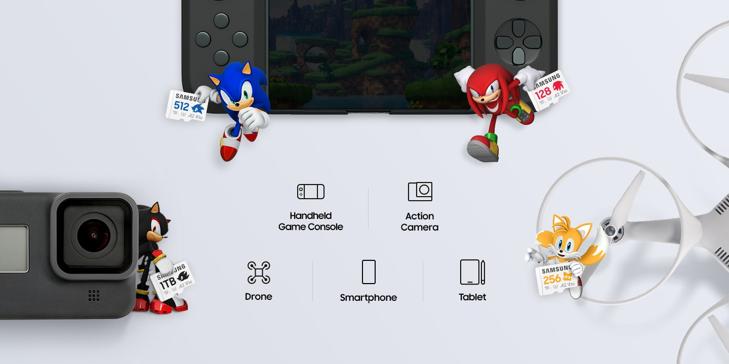 Sonic and all of his friends power up everything you do-on all your devices. From handheld gaming consoles to action cams and drones, this multi-device SDXC card boosts your adventures. All Sonic the Hedgehog™ PRO Plus microSD cards include a full size SD adapter.