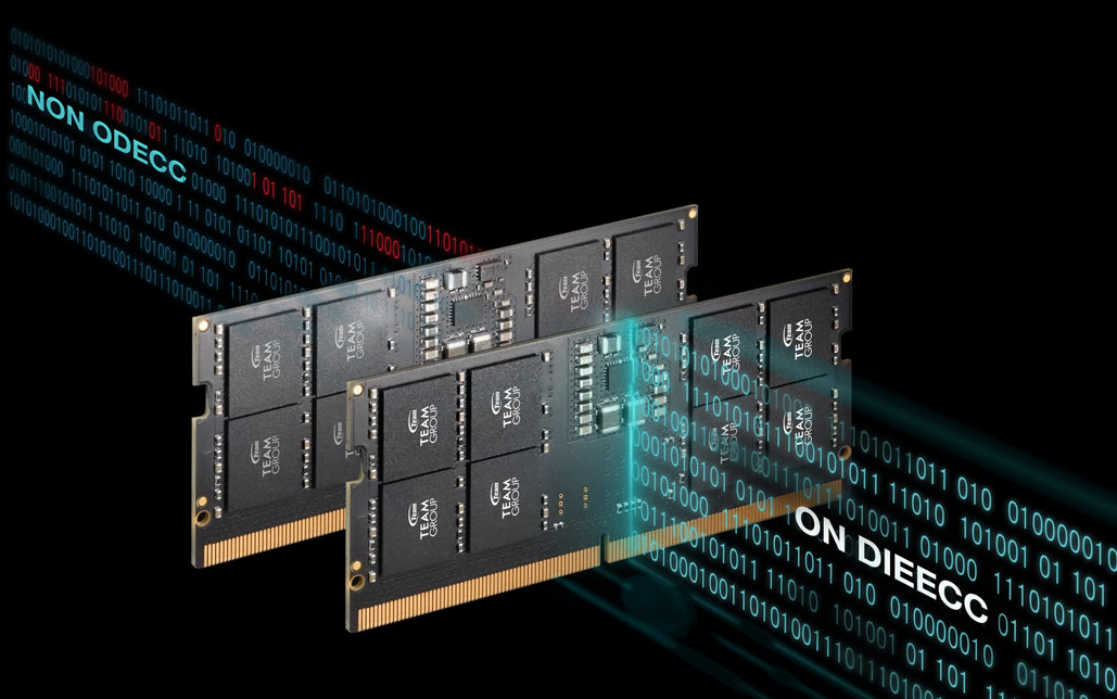The TEAMGROUP ELITE SO-DIMM DDR5 supports on-die ECCs, a feature that self-corrects DRAM cells, to deliver stability to DRAM systems using DDR5.