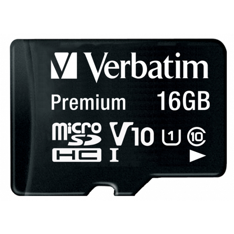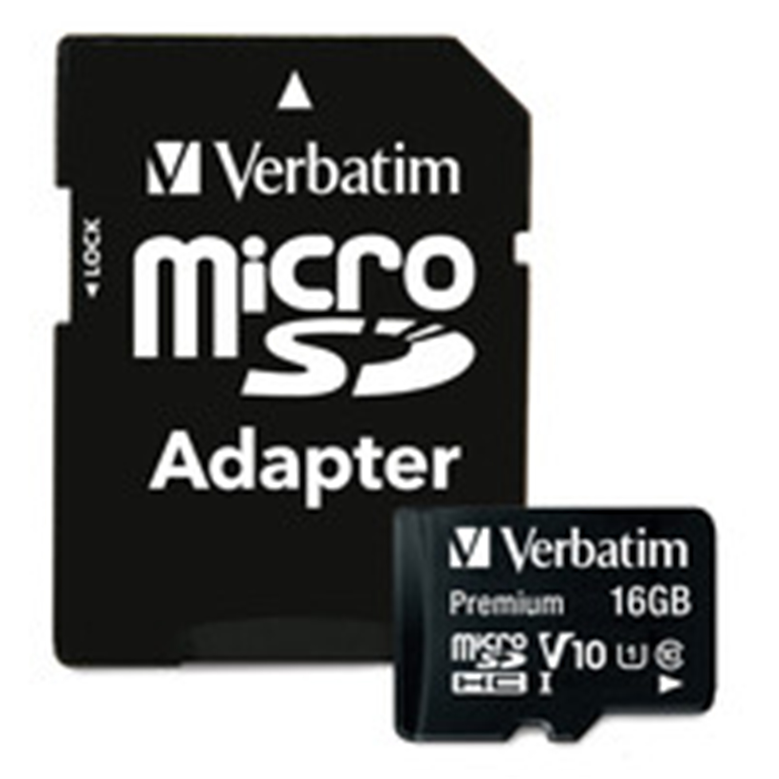 Verbatim 44082 Premium microSDHC Memory Card 16GB + adapter Class 10 with the SD adaptor.