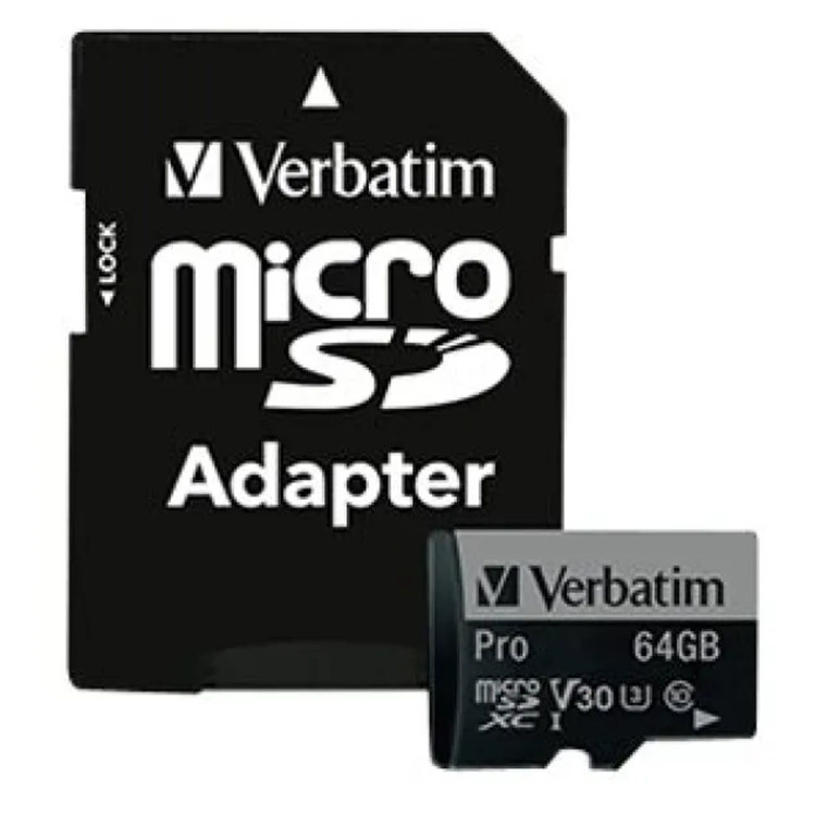 Verbatim 64GB Pro 600X microSDXC Memory Card with Adapter, UHS-I V30 U3 Class 10