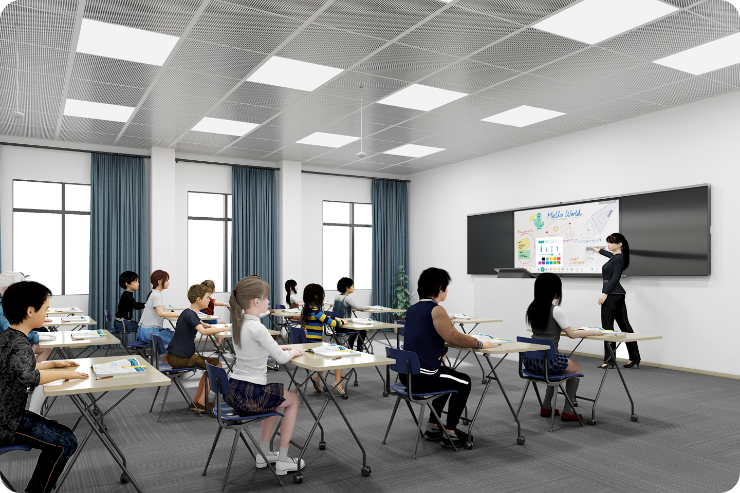 A fully metal screen integrates the traditional push-pull blackboard with the interactive flat panel, simplify the structure of the multi-function screens and offer an all-in-one design for both form and function.