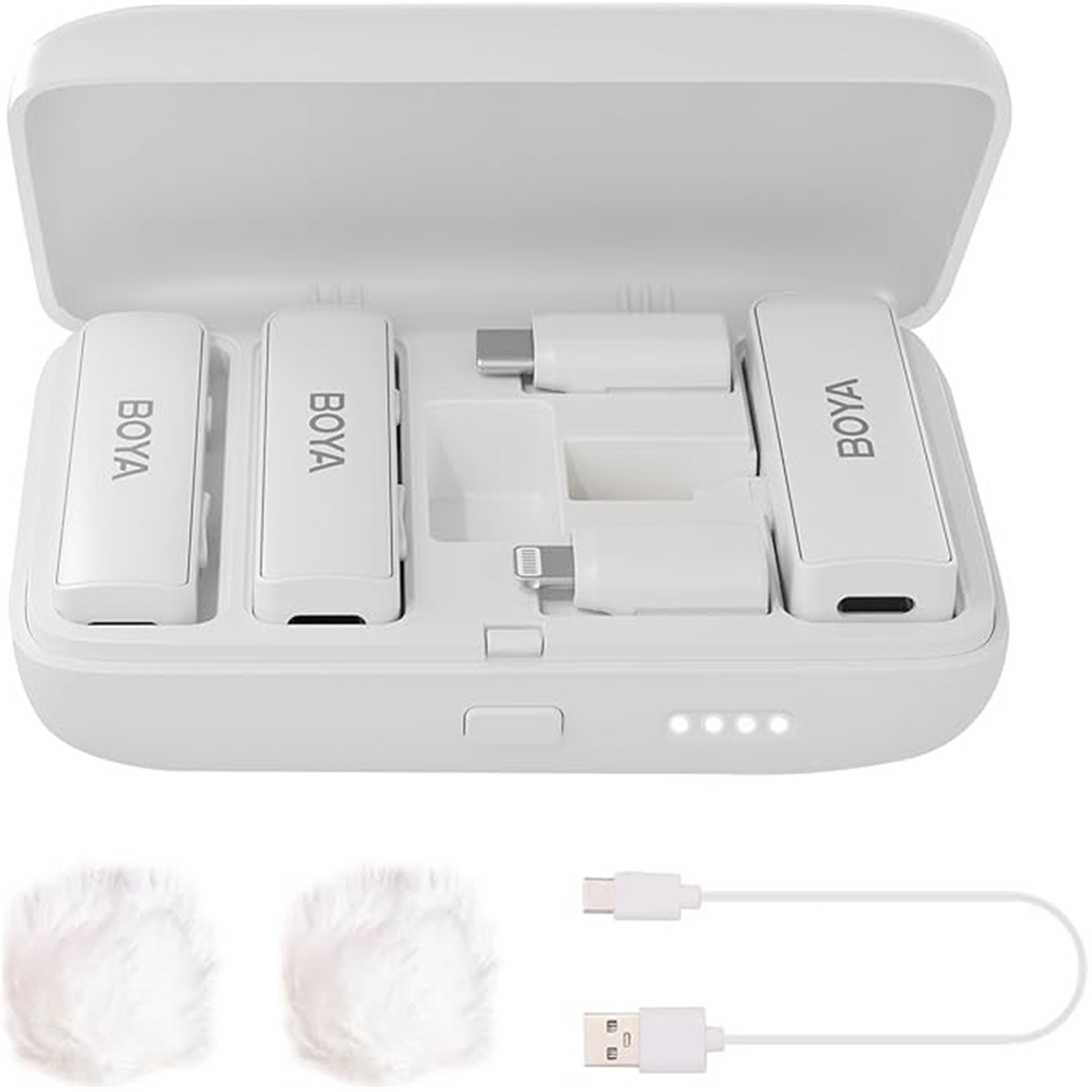 Boya BOYALINK Wireless Lavalier Microphone - White for iPhone / Android / Camera Vlogging - All-in-One Lapel Dual Mic System & Lightning & USB-C Inputs