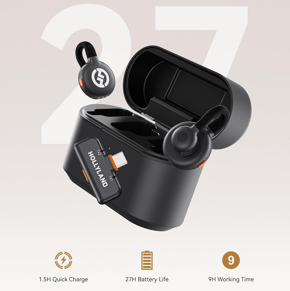 With 2 full charges from the charging case, the LARK M2S mobile version offers up to 27 hours of total battery life. Recharge in just 1.5 hours for 9 hours of working time per transmitter/receiver (noise cancellation off), keeping you powered for all-day creativity.