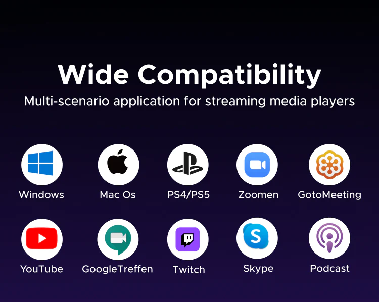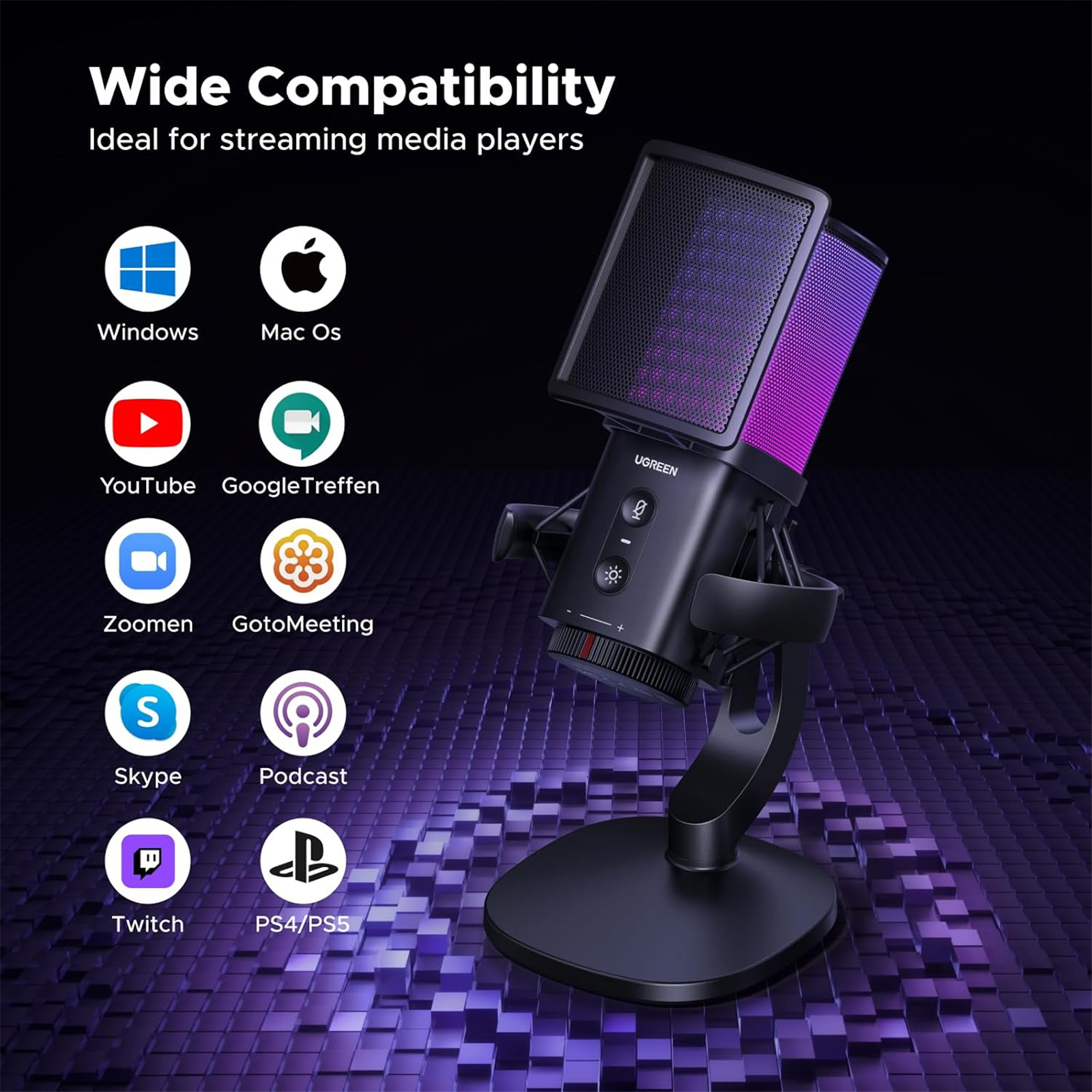 This USB microphone is compatible with computers, PS4/PS5, Switch/Switch 2, Steam Deck, iPhone 15/16/17/Galaxy S25 (requires a USB-C to USB-C data cable), Mac, Windows, iOS, and platforms such as YouTube, Zoom, and Skype. It is ideal for crystal-clear Discord chats, gaming, streaming, podcasting, and remote work. Note: Not Compatible with Xbox.