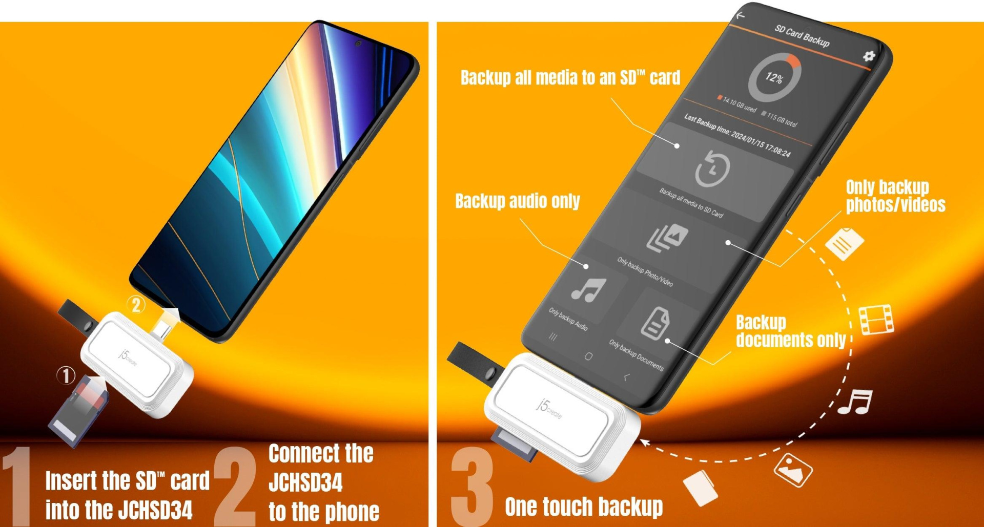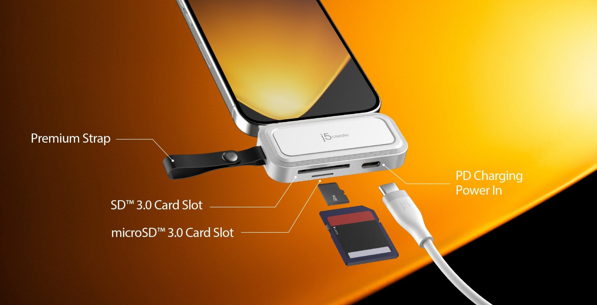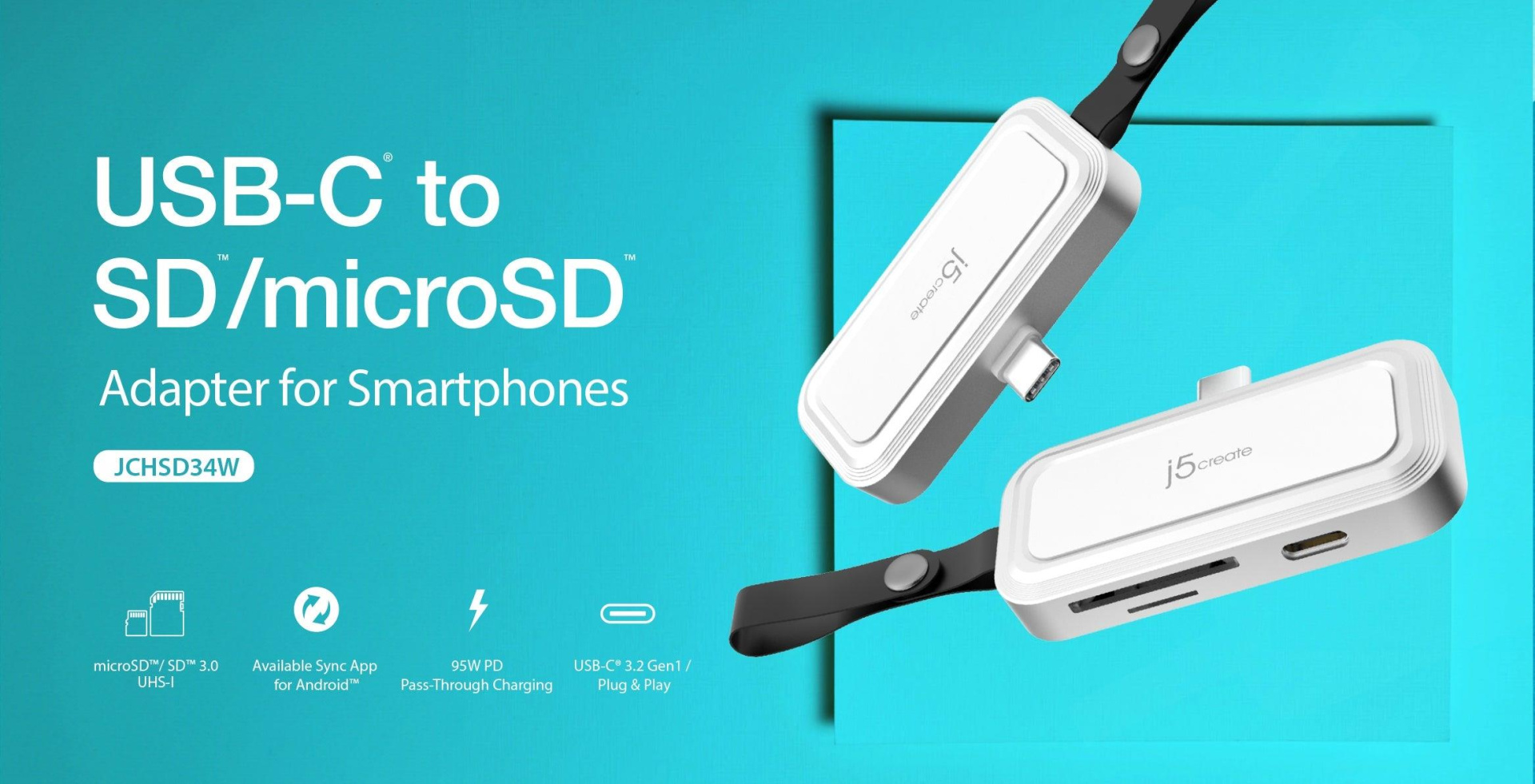 1 - USB-C® to SD™ /microSD™ Adapter for Smartphones (JCHSD34)
