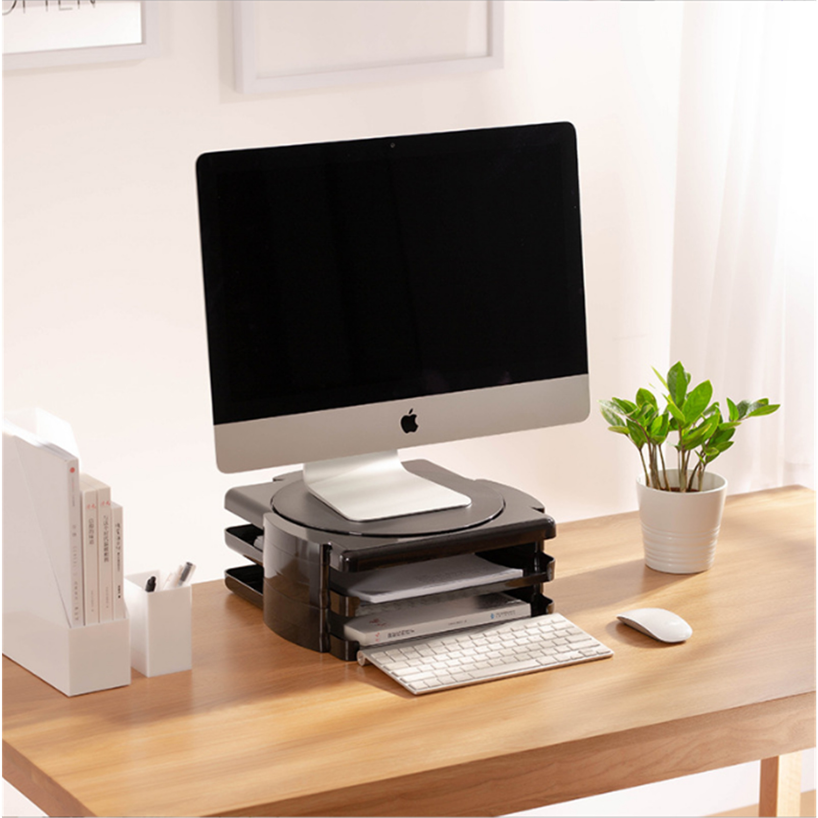 Office Monitor & Laptop Riser Stand - 360 Degree Rotatable Base - 2x Document Trays - Stackable & Removable Columns