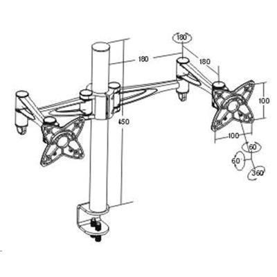LUMI LCD-T9 Dual LCD Table Stand Supports 75 & 100 mm VESA mount. Max Load: 15kg. Swivel 360 deg Tilt +- 30 deg. Max Height 450mm