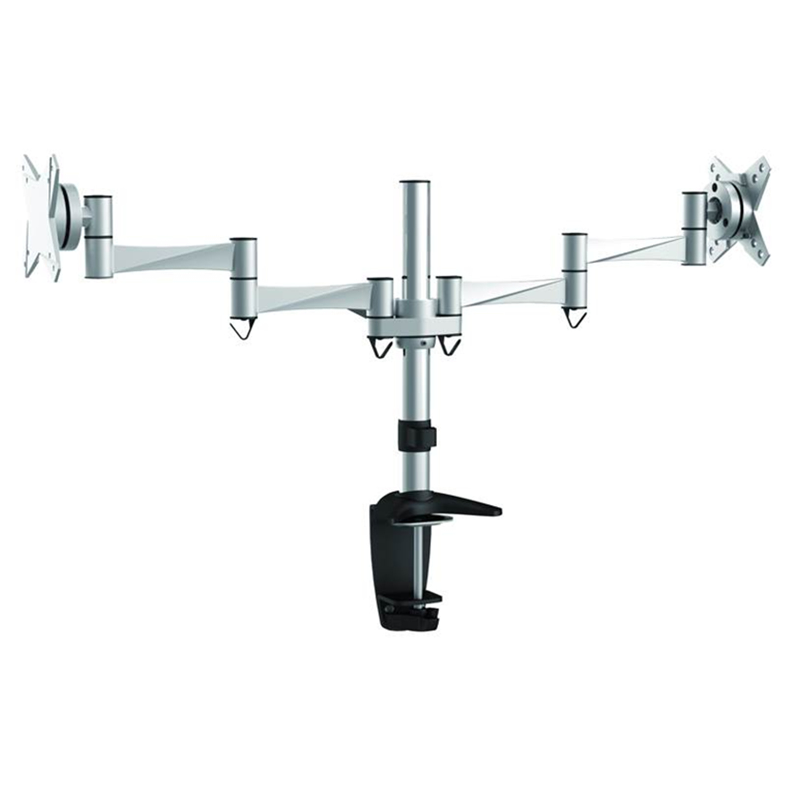 LUMI BT-LDT02-C024 13"-27" Dual LCD Desk Clamp Mount Max arm reach: 858mm. Tilt:-+15deg Swivel 360deg. Max Load 8kg per arm, Supports 75 &100mm VESA Std Elegant Aluminium