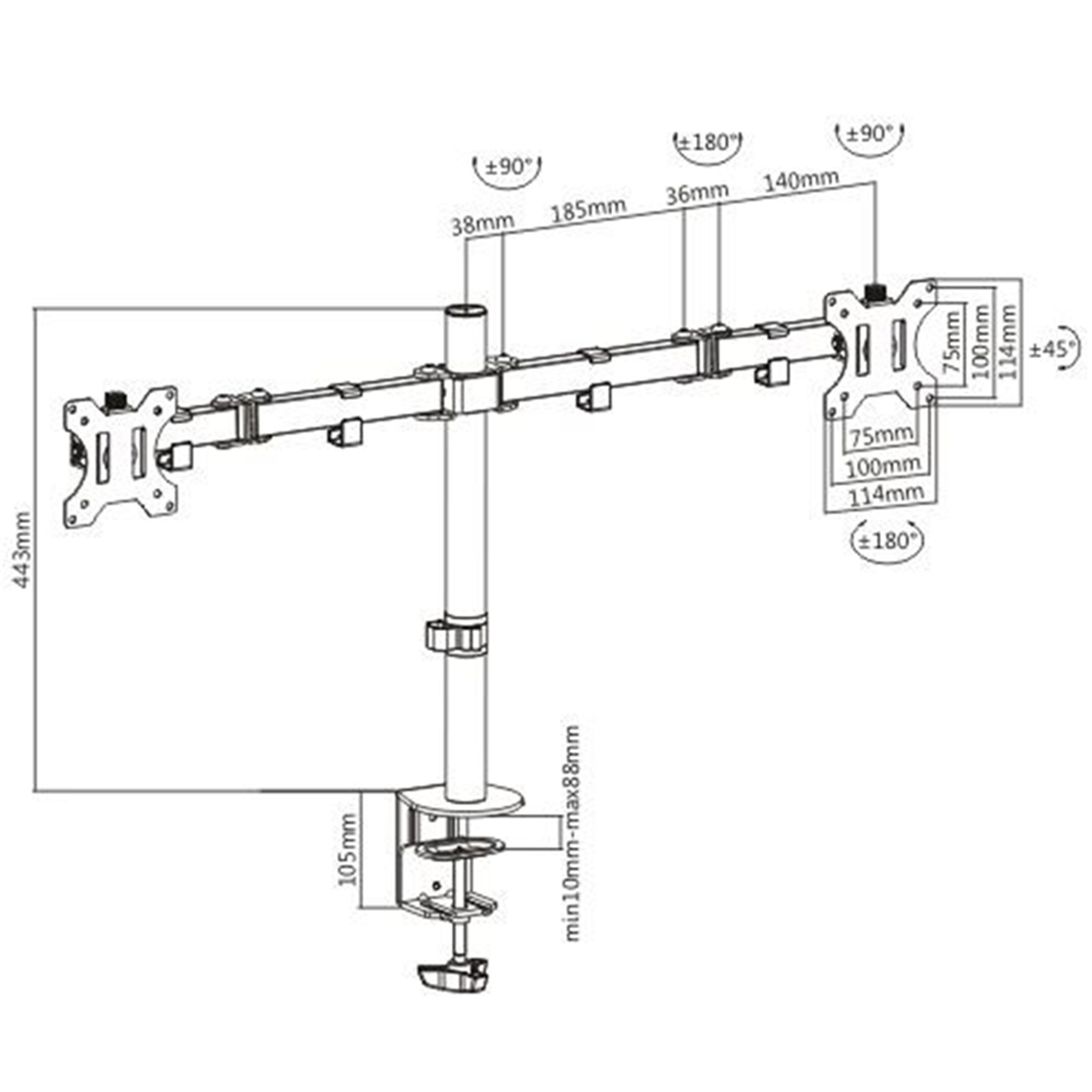 LUMI LDT12-C024N Economy Double Joint Steel Monitor Arm