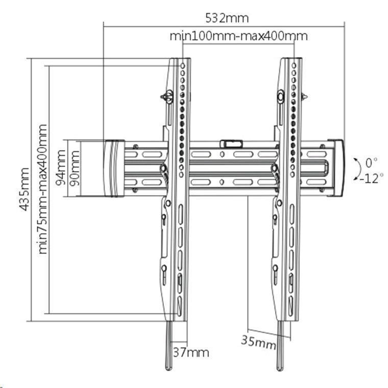 The LP45-44T is a tilting wall mount for 32"-55" curved & flat panel TVs. Its solid heavy-gauge steel construction offers a sleek, high-tech look while providing strength and durability. The adjustable structure allows freely tilting for 12° down for viewing ease and enjoyment. Its automatically click-in spring lock with easily-release cord easily and securely attaches your TVs to the wall. Universal mounting pattern fits virtually any LCD or plasma TV up to 50kgs/110lbs. Compatible with VESA hole up to 400x400.