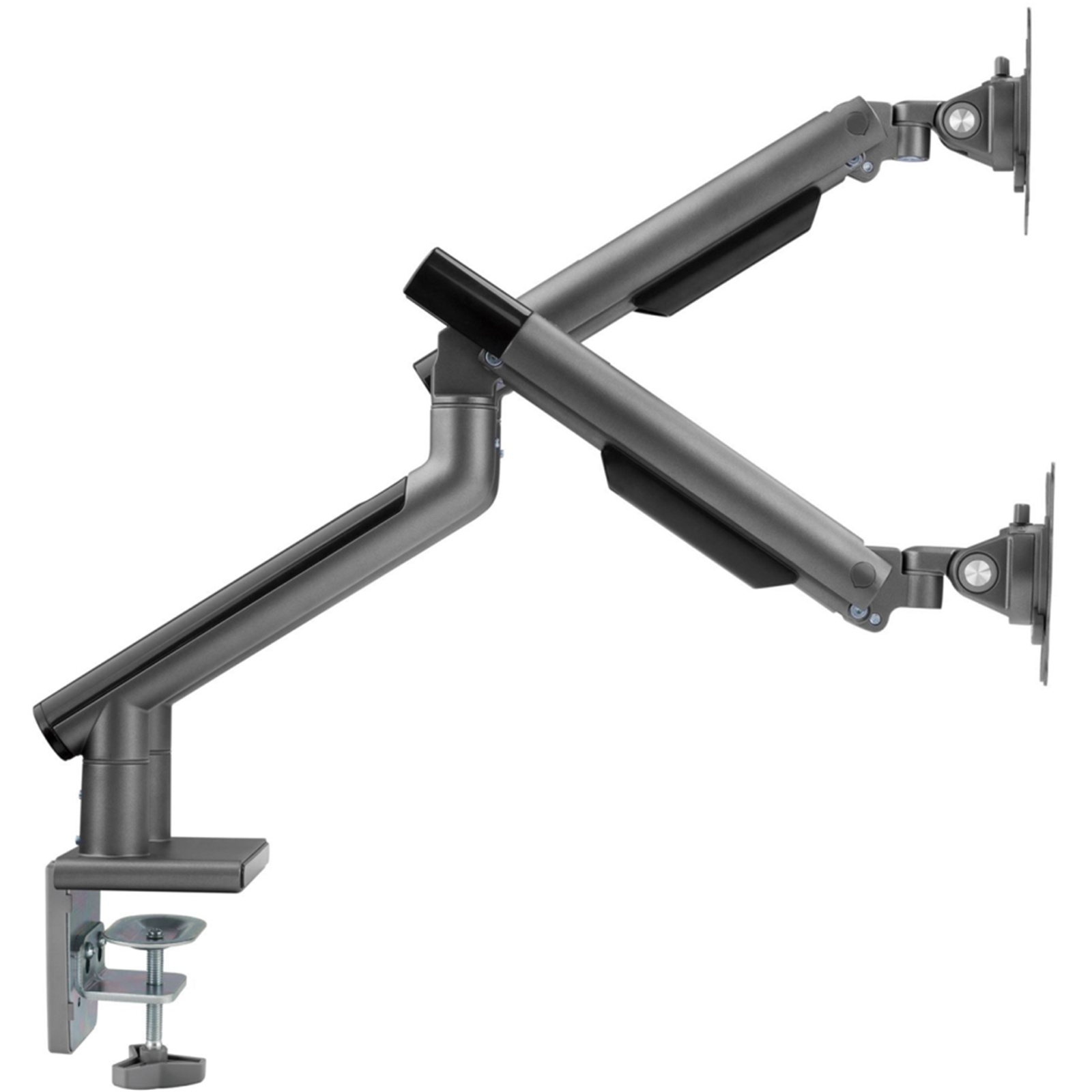Brateck LDT49-C024-SG 17"-32" Dual Premium Slim Aluminium Spring-Assisted Desk Mount Monitor Arm - Quick Release Detachable VESA Plate, Built-in Spring Tension, 180 Rotation Stop, Built-in Cable Management, Grey
