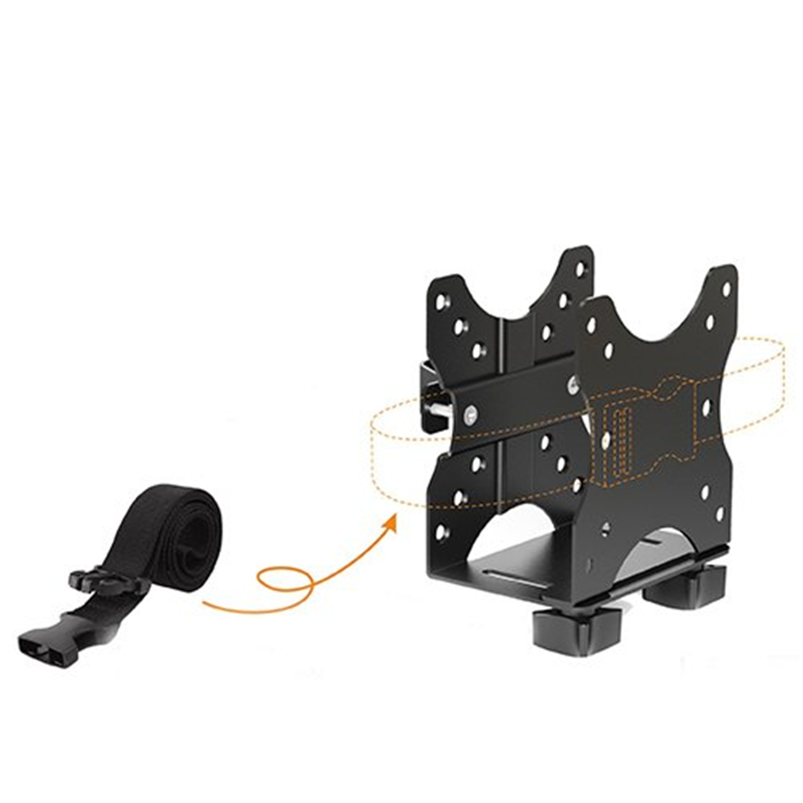 With the CPB-1 multifunctional thin client mount, placing your CPU in a convenient, accessible place has never been easier. You'll be able to mount your CPU instead of leaving it on the floor to take up your foot space! The universal design adapts to the dimensions of the box, while its mounting interface attaches to a variety of surfaces: a VESA plate, directly to a desk, clamped to a pole. Straps are included for increased stability. It's weight capability is 5kg/11lbs. The CPB-1 is not only a great organizational tool, but also reduces CPU's internal contamination and extends equipment life.