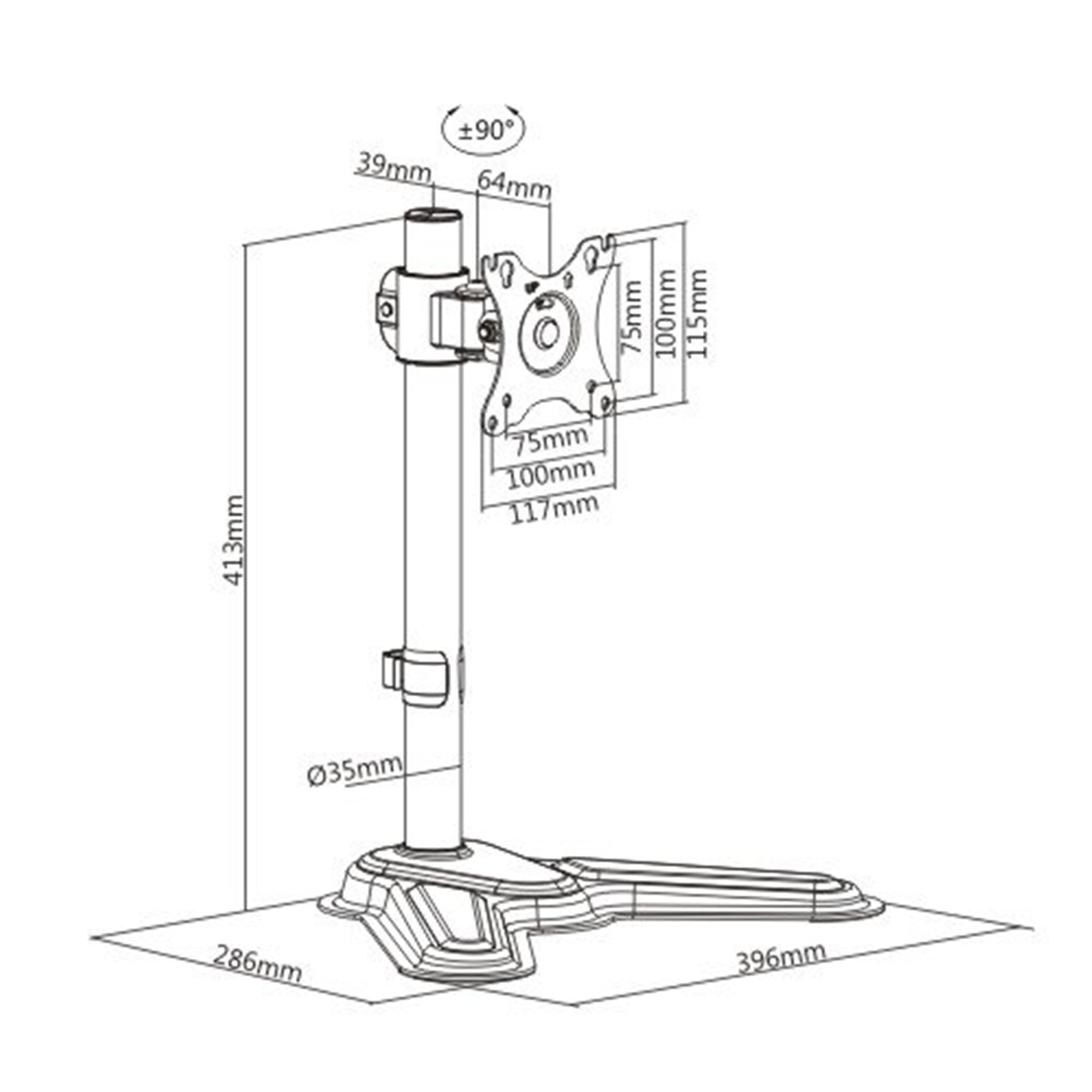 - 360° Rotary VESA Plate: for more viewing experience