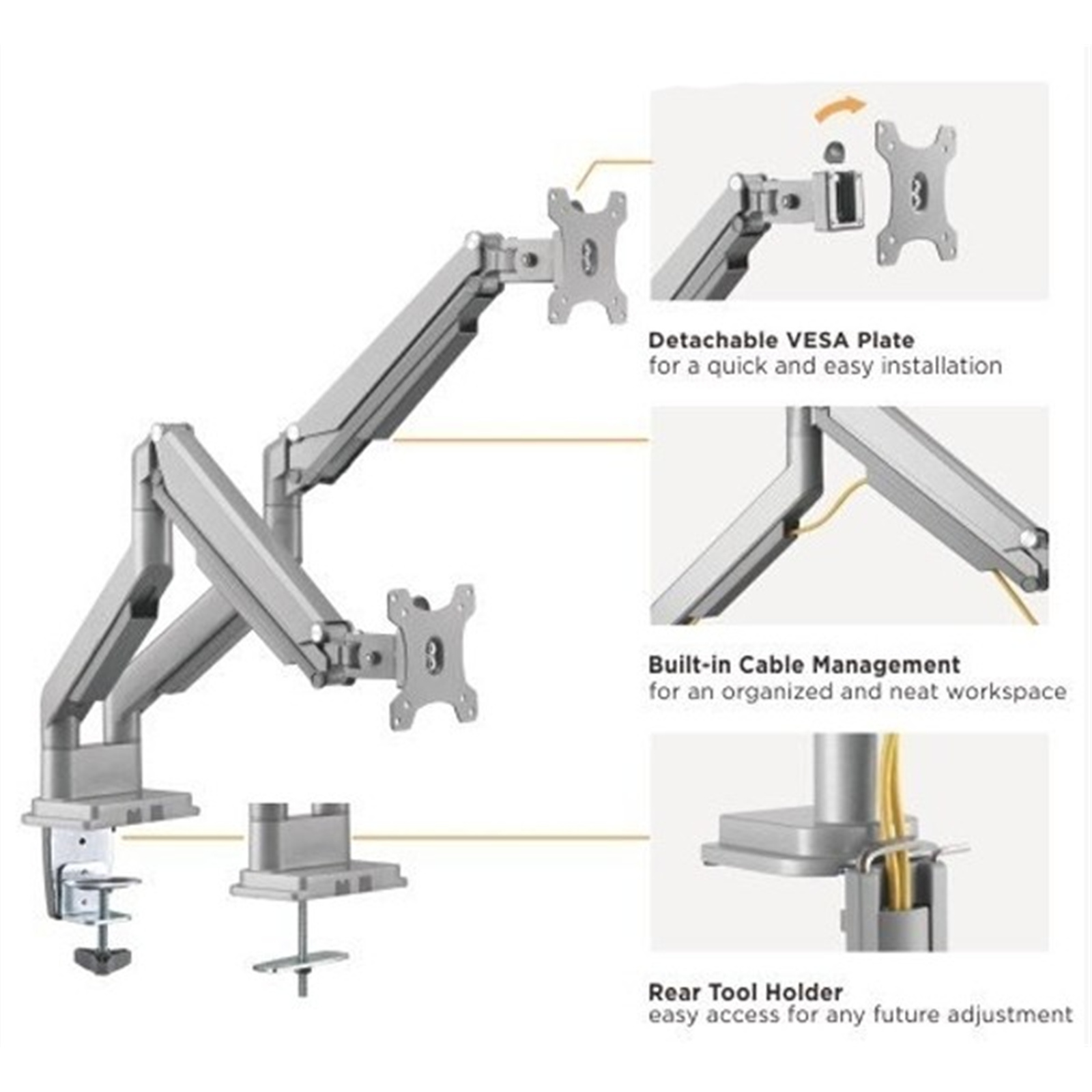 LUMI LDT34-C012 Gas Spring Dual Aluminum Monitor Arm for 17"-32" Swiveling Arm Detachable VESA Plate Desig w/Built-in Cable Management
