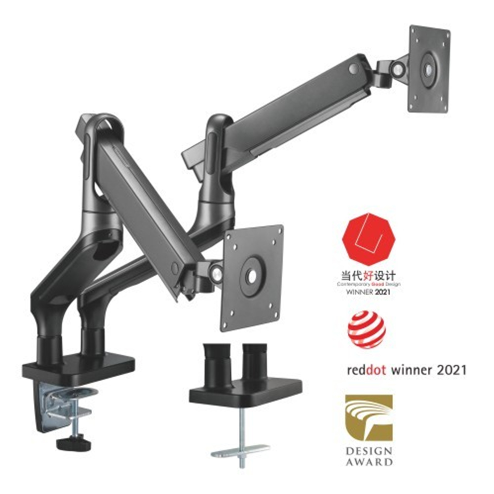 DUAL MONITOR PREMIUM ALUMINUM SPRING-ASSISTED MONITOR ARM For Most 17''-32'' Flat Panel and Curved Monitors