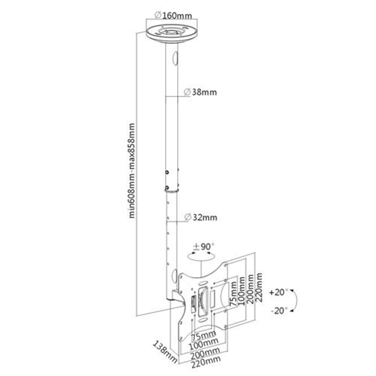 LUMI LCD-504A 23-42" Single Telescopic LCD Ceiling Mounts Bracket for LCD/Plasma TV Tilt +-20 deg, Rotate 180 deg