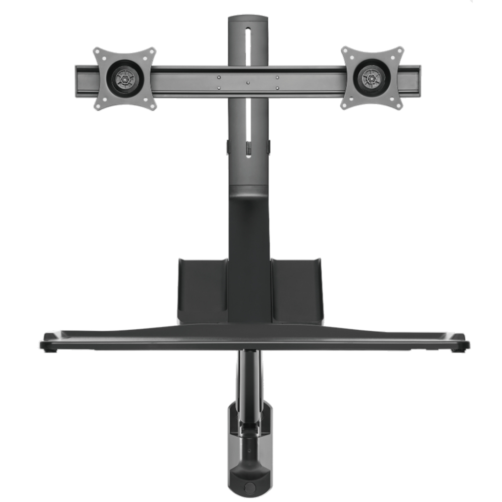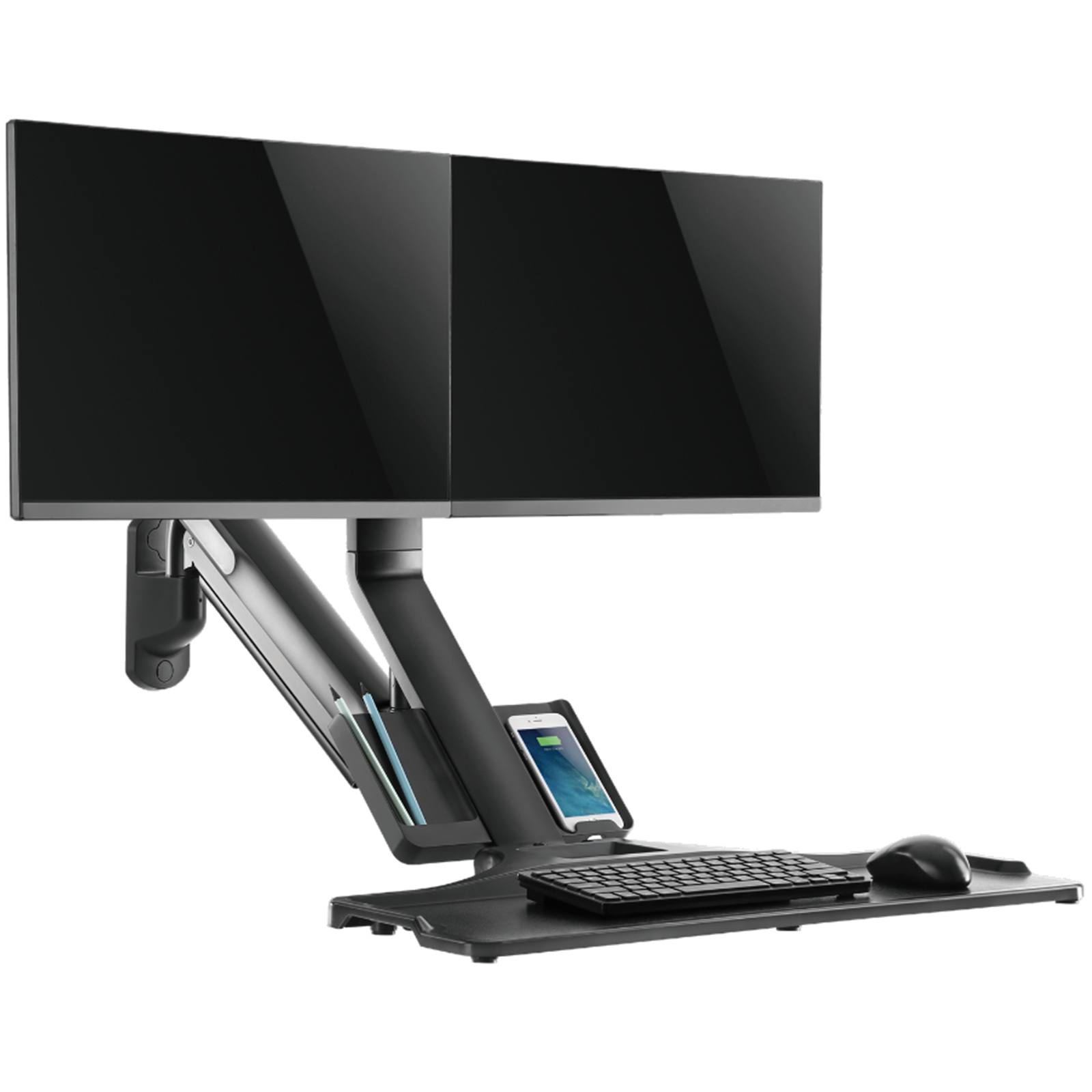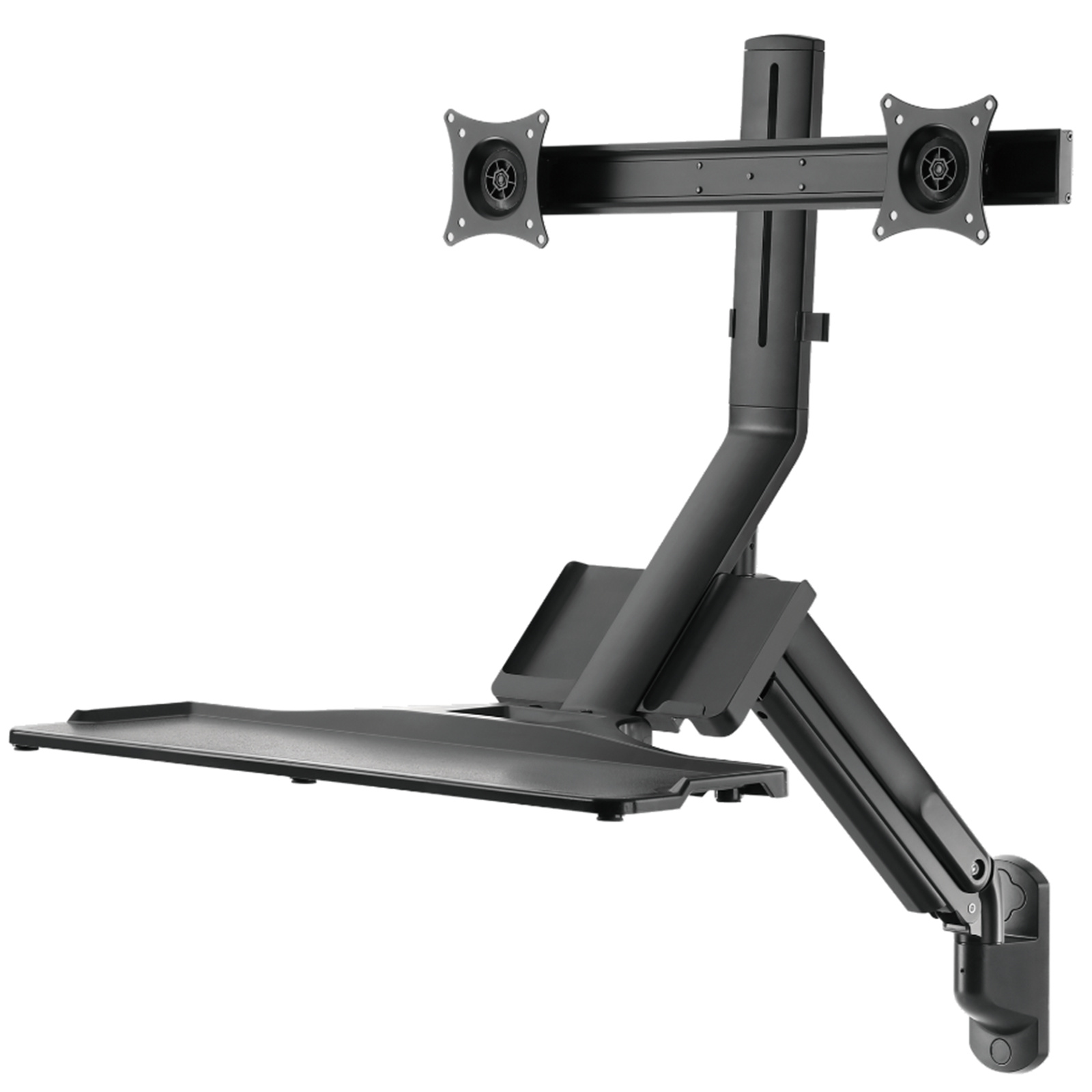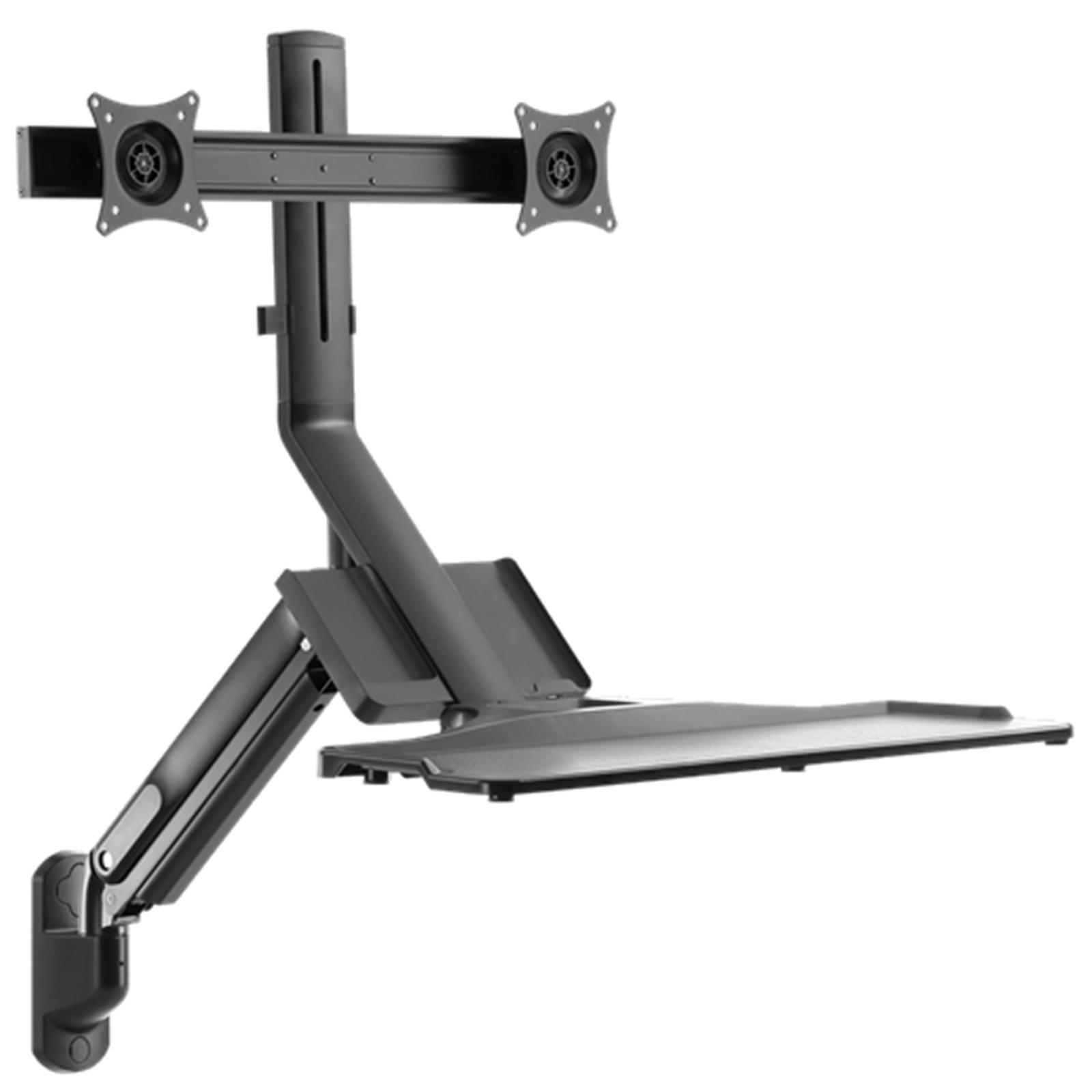 Brateck WWS05-02-P01 17"-27" Wall Mount Dual Monitor Gas Spring Sit-Stand Workstation. Folding KeyboardTray.Counter-Balance Gas Spring. Integrated Ball-Joint. 2nd Storage Tray. Easy Height Adjust.