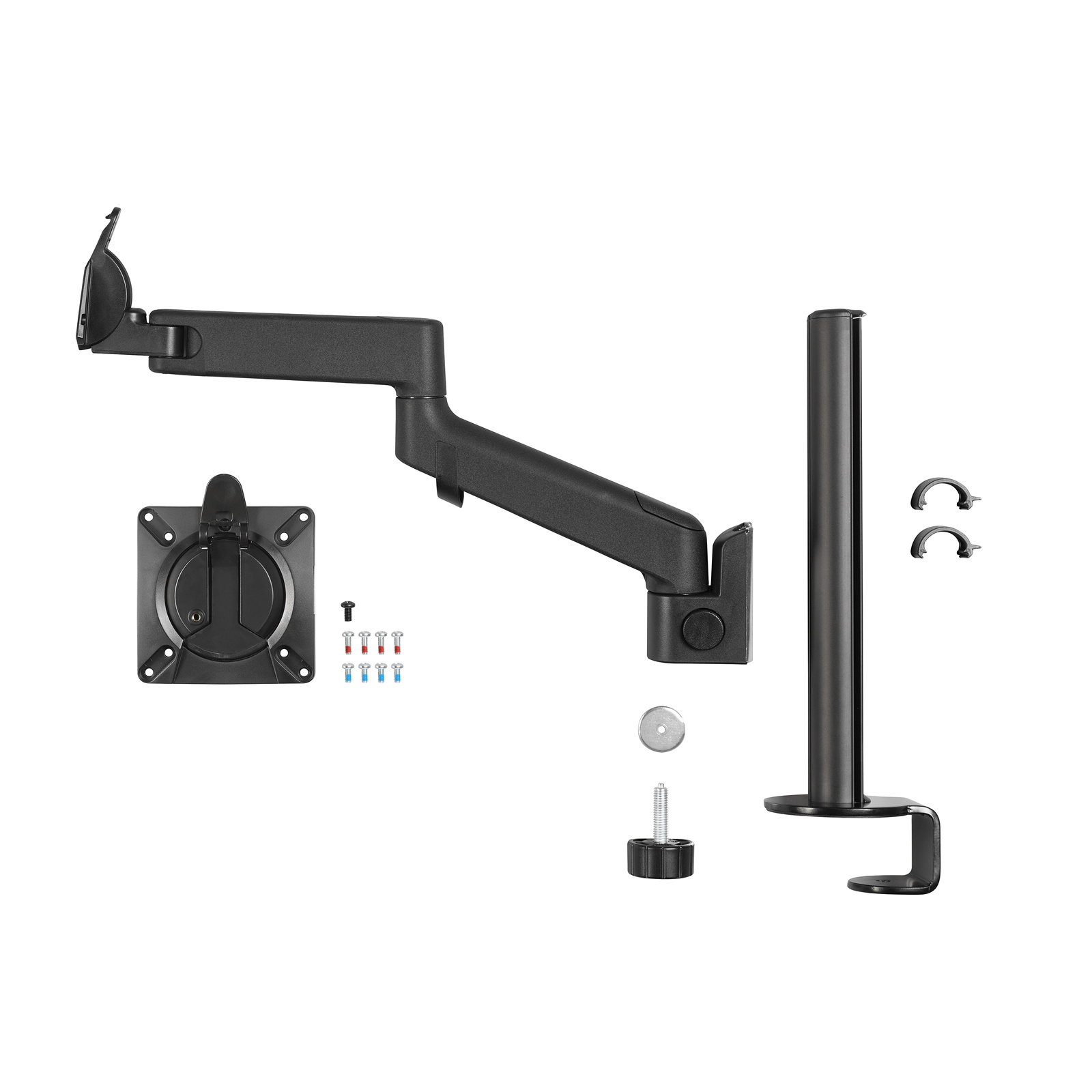 Lima is fast and easy to install. The post and clamp come in one piece, which attaches to the desk using a thumbwheel screw, and the arm then slides into the grooves on the post. And all you need to attach your screen to the VESA mount is a screwdriver.
