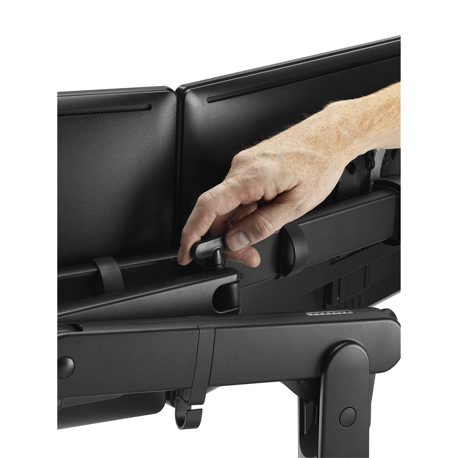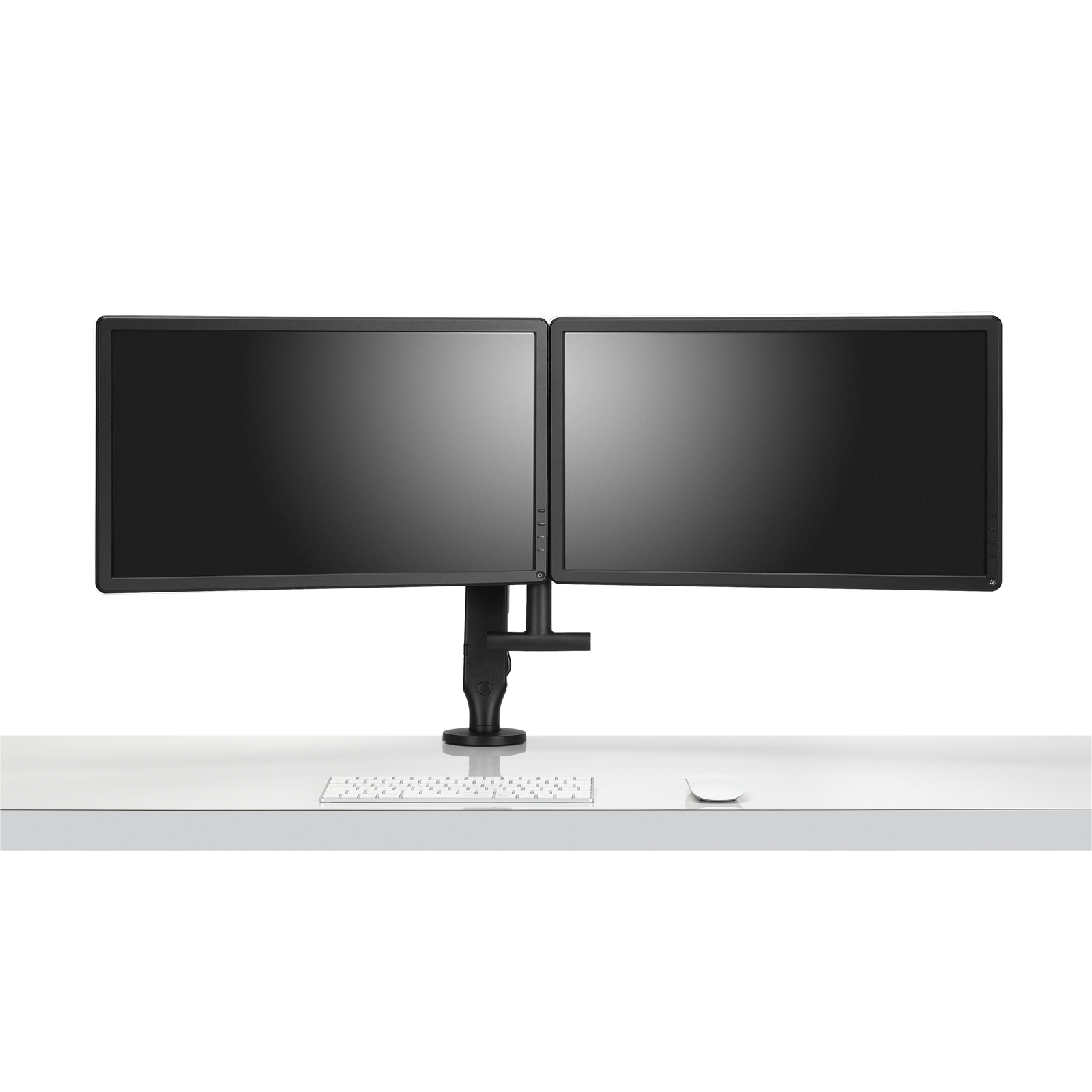 A dual screen mount can be attached to the main arm, improving user productivity. And because there's no need to provide a separate arm for each screen, expenditure is kept to a minimum while productivity increases.