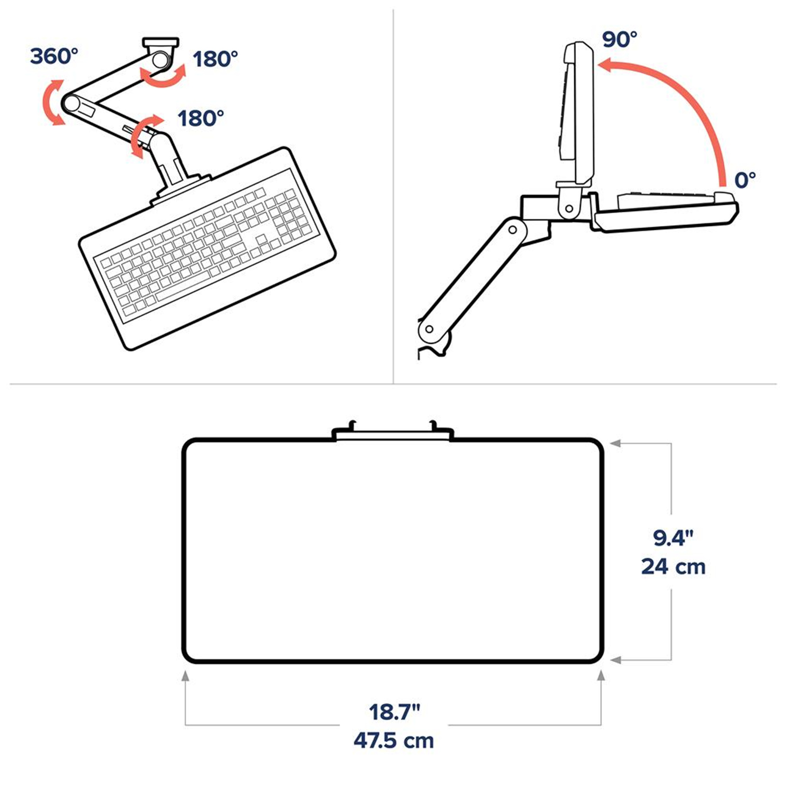 - Maximize workspace: places keyboard where it's needed then folds for storage within 4" (10 cm) of wall