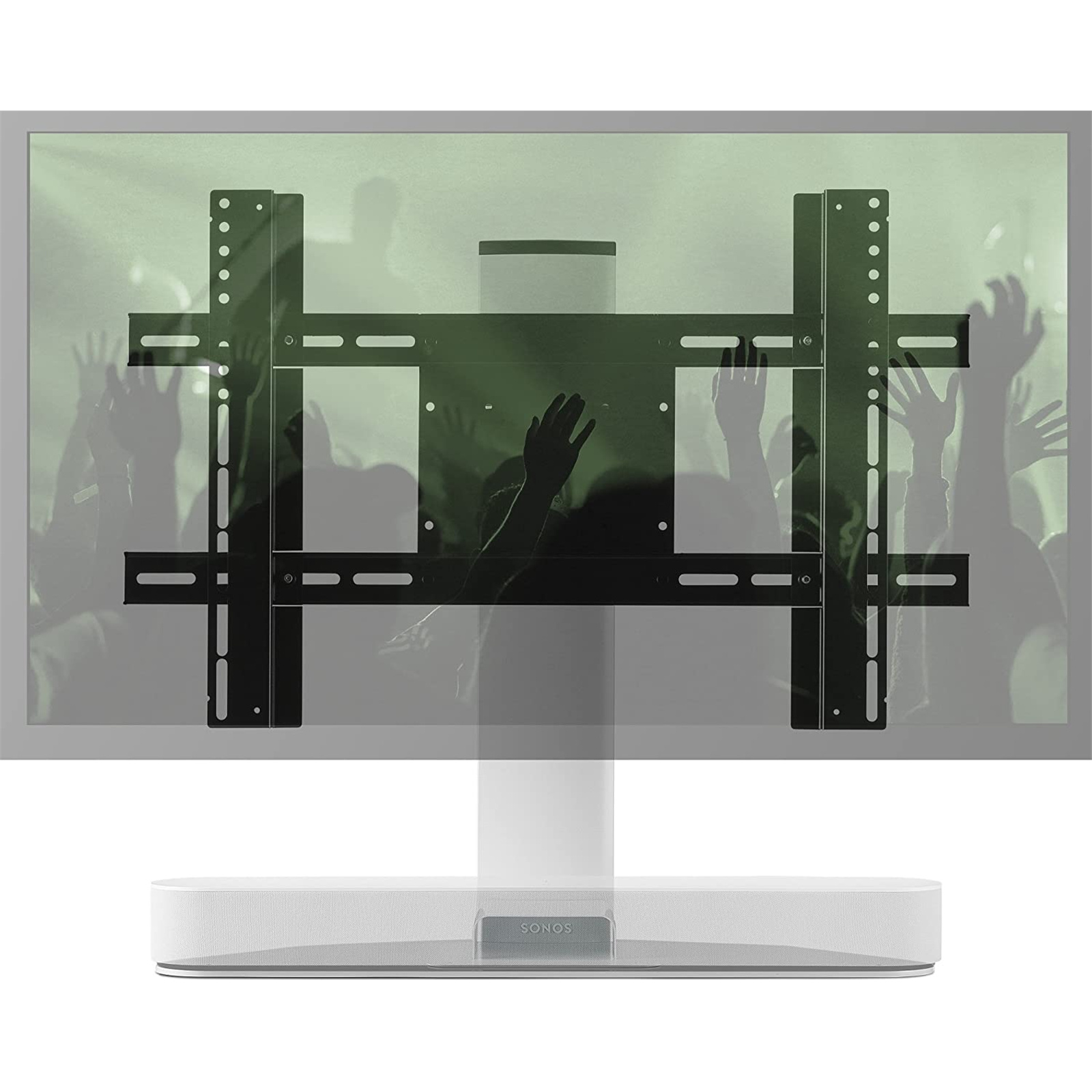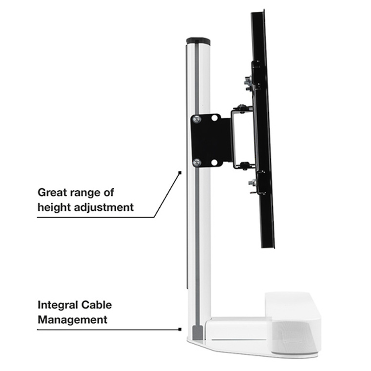 This premium stand allows you to seamlessly mount a TV above the Sonos Beam, keeping the screen visible. Swivel functionality allows for flexible room positioning, including corner placement. That swivel functionality - 25° left, 25° right - a wide range of available height adjustments to suit different TVs, plus a design that suits siting in both free space and in corners, makes the Flexson Adjustable TV Stand the most flexible option you can buy. It's also the most sturdy: its aluminium and high-grade steel design - expertly made in the UK - is able to take TVs measuring up to 65in and weighing up to 45Kg. The Flexson Adjustable TV Stand is easy to use - all fixings and tools are included in the kit, and there's integrated cable management to keep things neat and tidy.