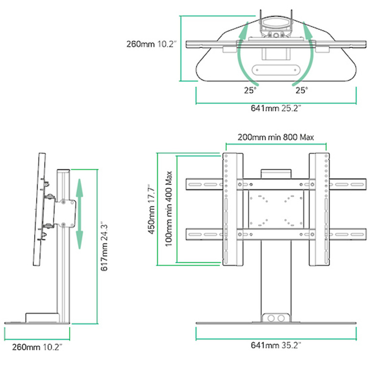 -Ideal for corner room placement: TV swivels 50° (25° left, 25° right)