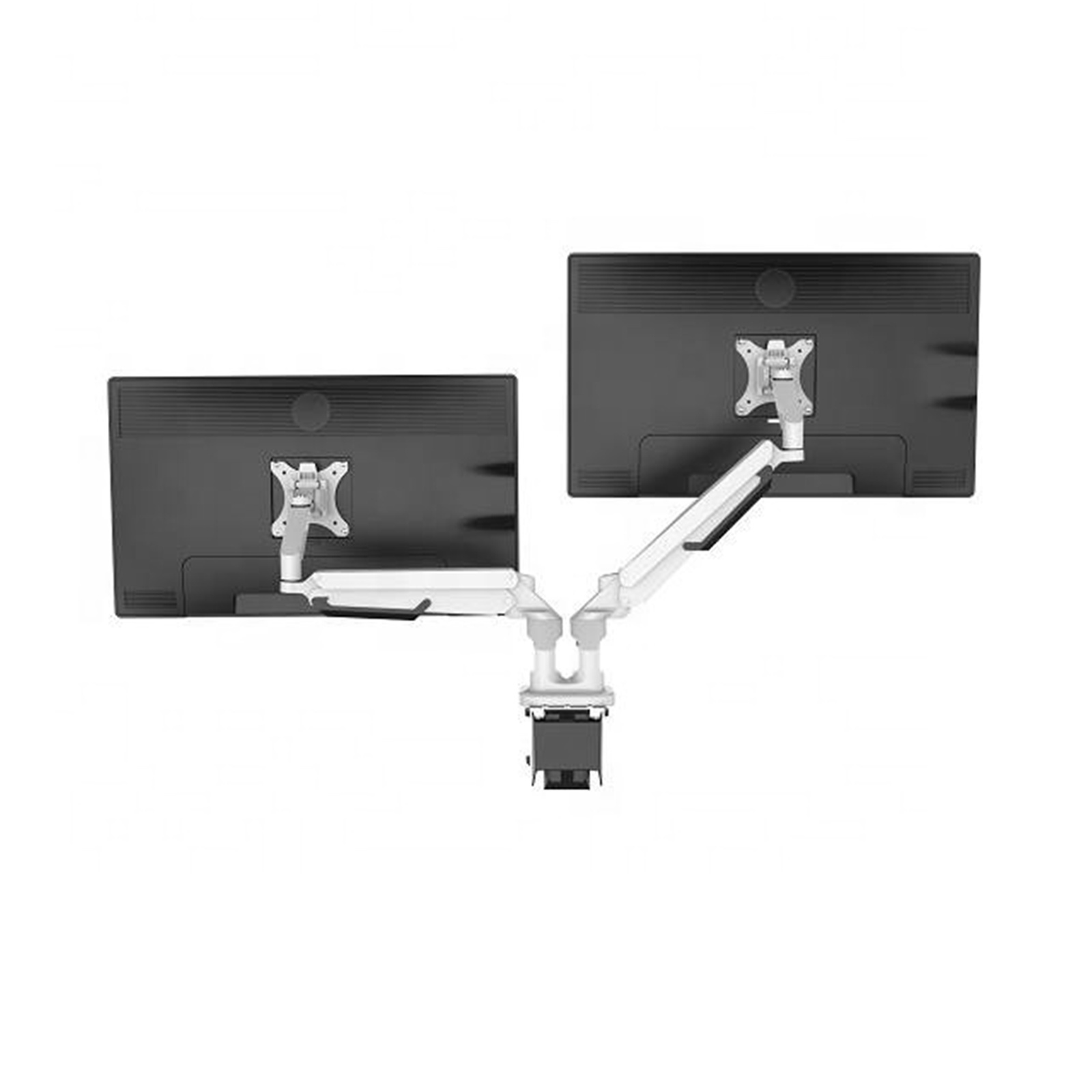FlexiSpot 17"-32" Dual Gas Spring Monitor Stand - Aluminum Arm - White - Swivel 180deg - Quick Release VESA Plate - VESA 75 & 100mm - Max Load 5KG Per Arm - Clamp Or Grommet Installation - 5 Years Warranty