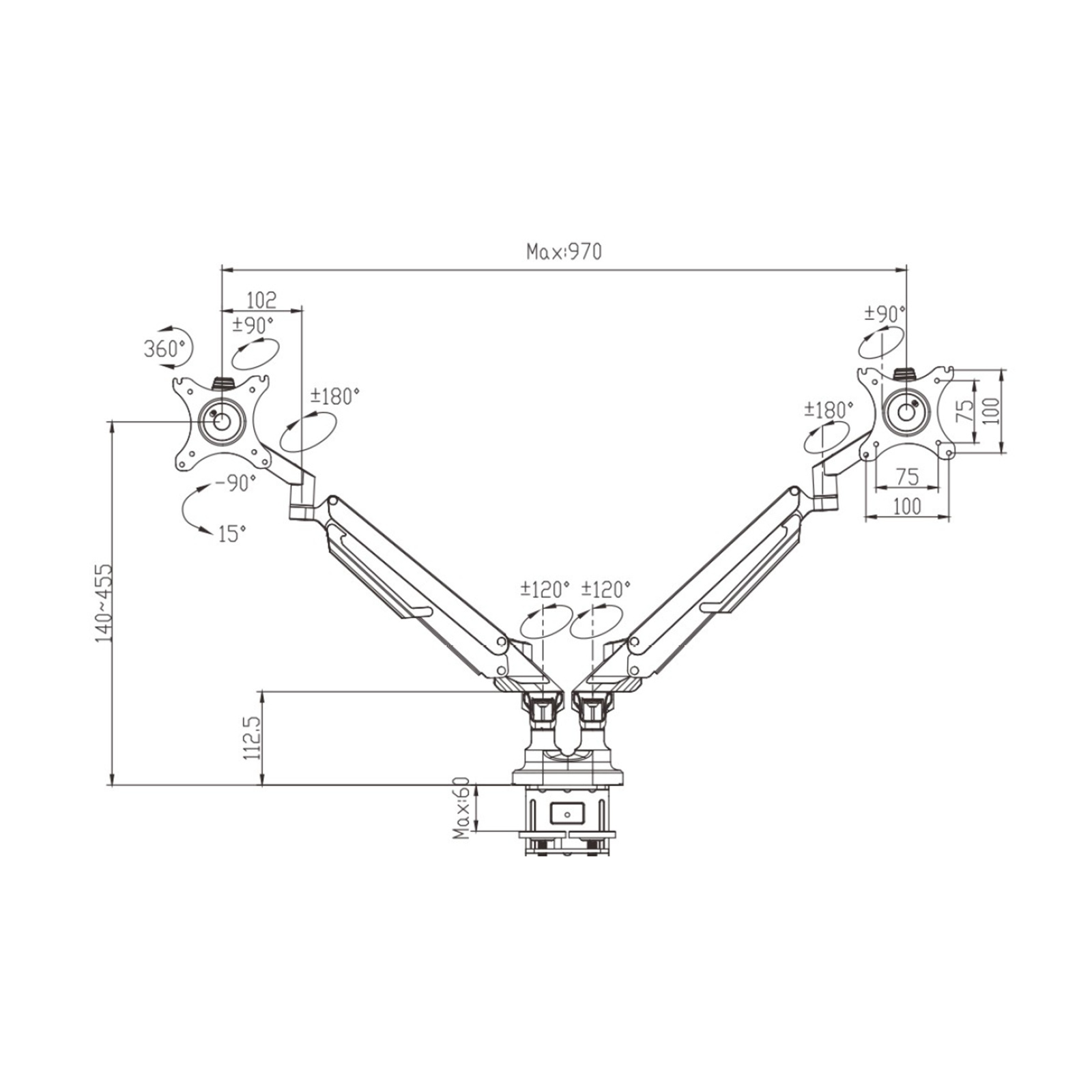 The MA8D2W single monitor arm comes equipped with a long, flexible arm that stretches 97cm when extended and raise to a max height of 45.5cm . A wider range of motion gives you more options for your workspace. Perfect for deeper desktops or for jobs that require only occasional standing.With its special quick-release VESA plate, MA8D2W can support a 32 Inch monitor weighing up to 5kg per arm. The Arm easily adjusts, allowing you to work in a more comfortable, ergonomically correct position. Staring at a computer screen that's not eye level can cause neck and eye strain, as well as painful back problems. Quality craftsmanship, impressive functionality, and unparalleled design raise the bar for this mount to the highest level.