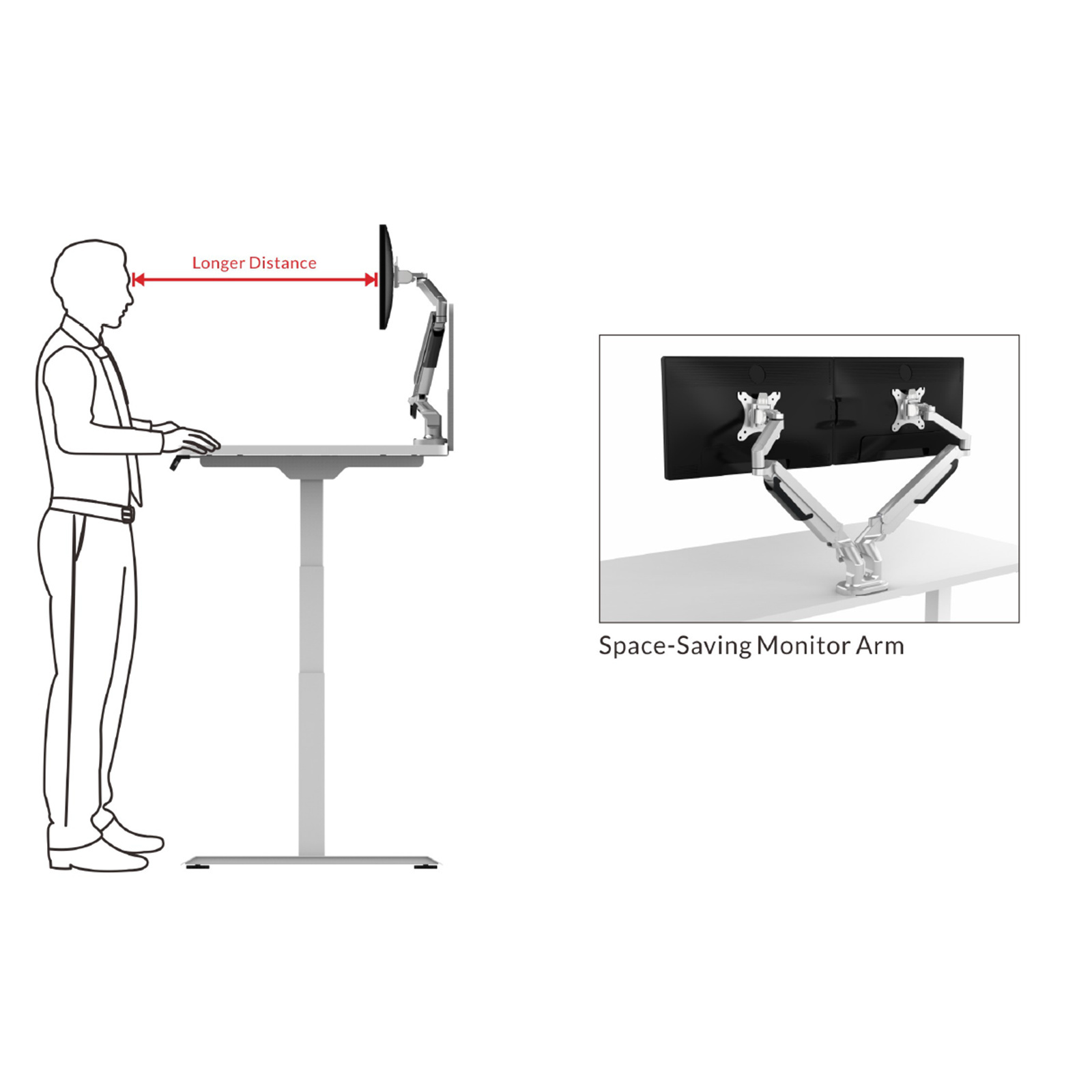 - The arm easily adjusts to support an ergonomically correct workstation; sit more comfortably at your desk while reducing neck, eye, and back strain.