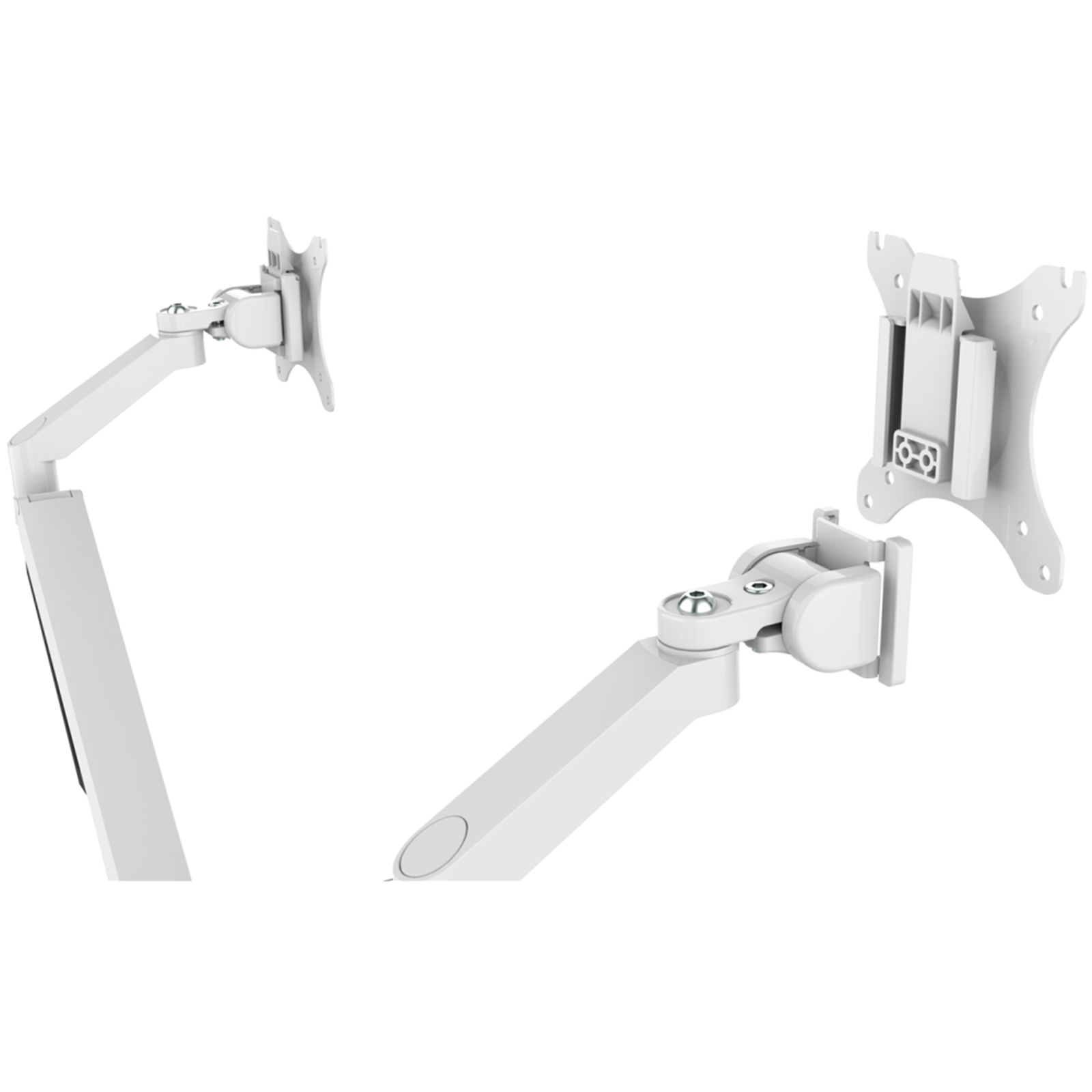 - High-quality ball joint tilts and swivels your monitor.