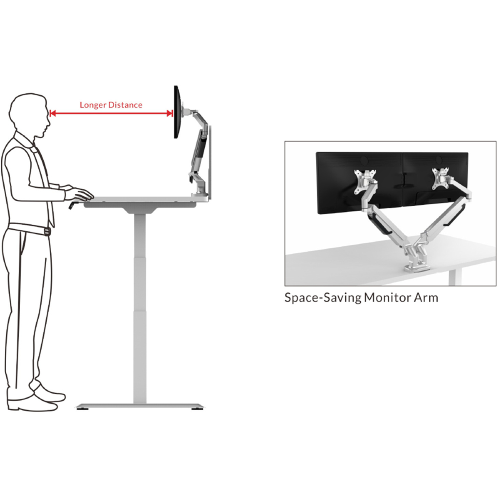 - The arm easily adjusts to support an ergonomically correct workstation; sit more comfortably at your desk while reducing neck, eye, and back strain.